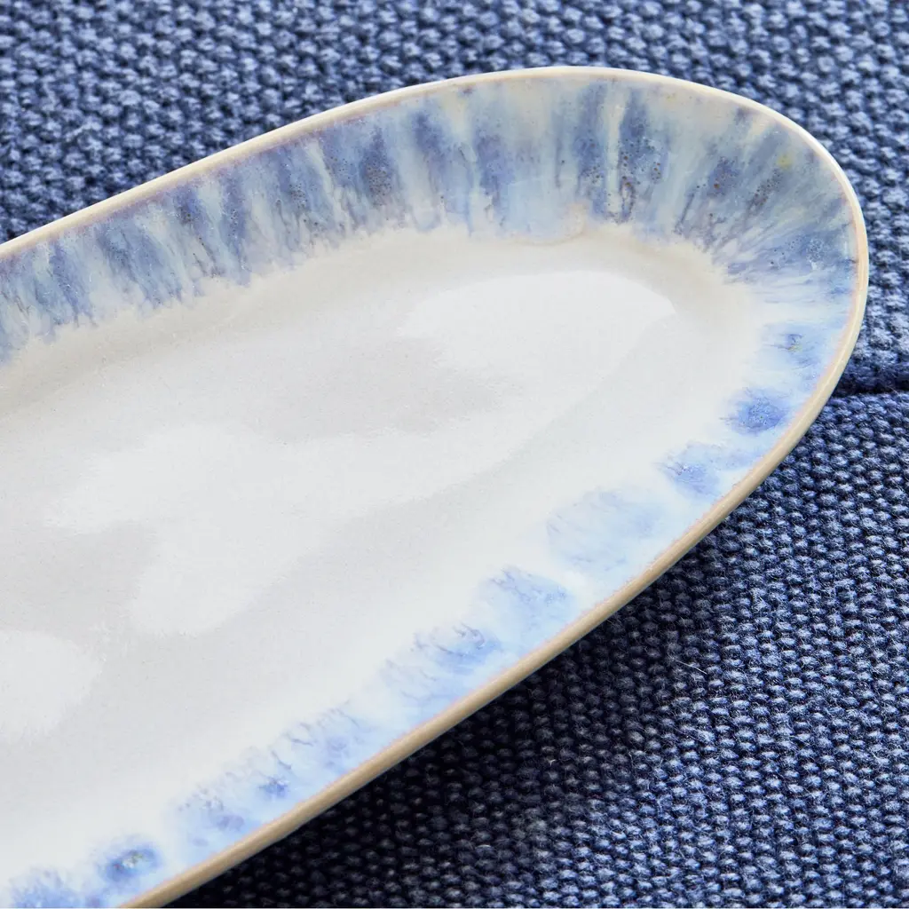 Made in Portugal, the dishwasher safe Brisa Oval Platter is made of durable stoneware, with a lovely glaze that brings the look of a lagoon or a sandy beach right to your dinner table. This petite oval platter serves up everything from cheese to roasted vegetables.