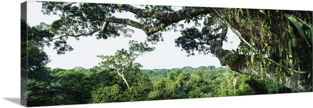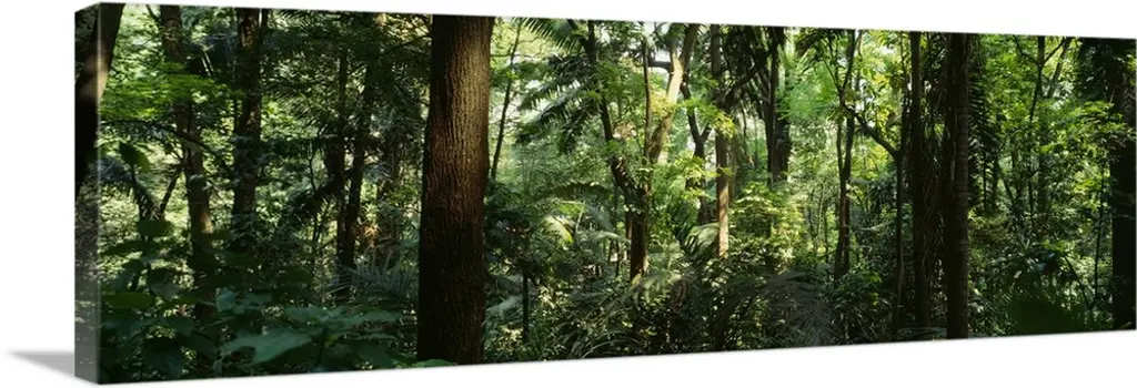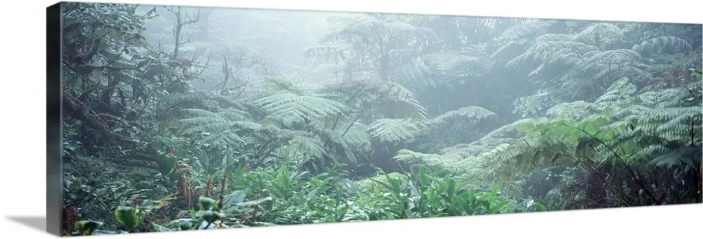 A wide angle picture taken of a lush, but dense green rain forest in Costa Rica.