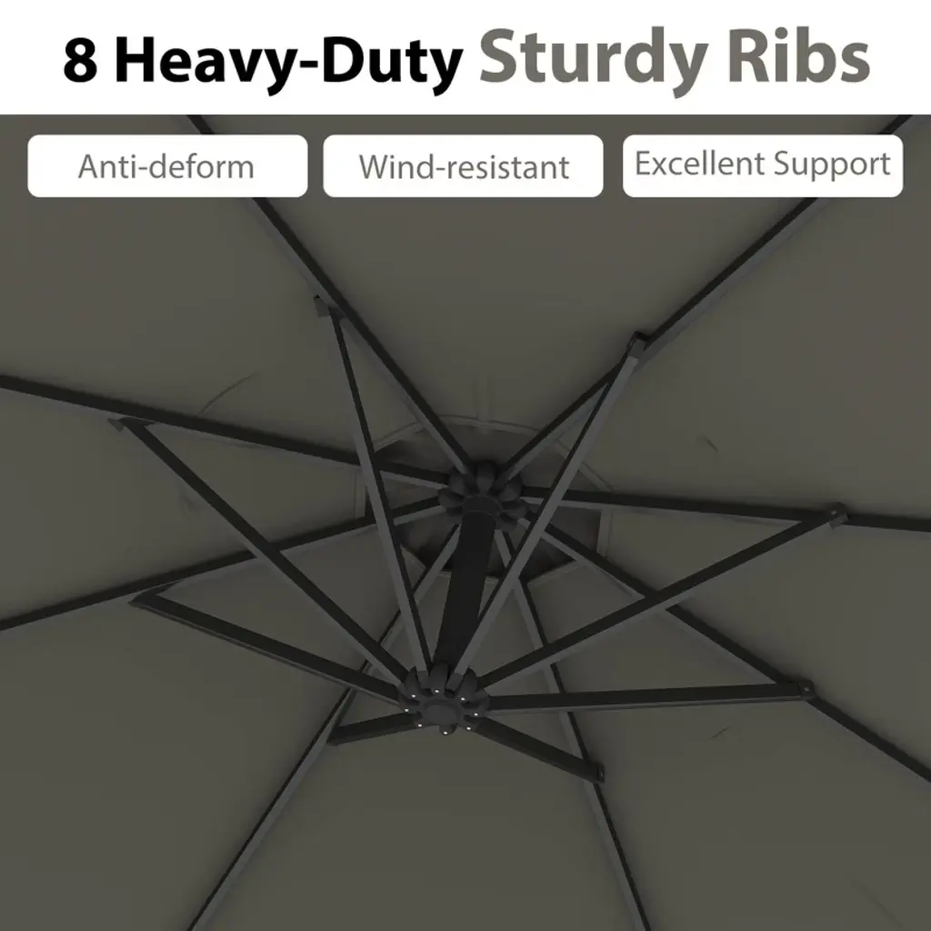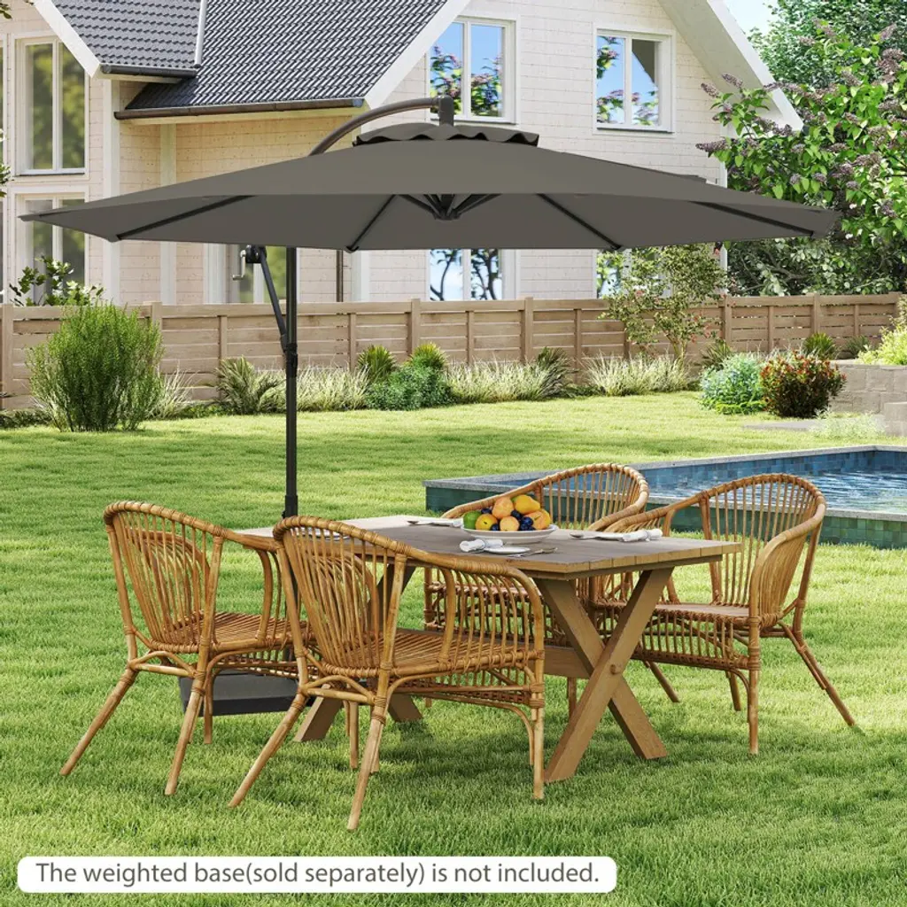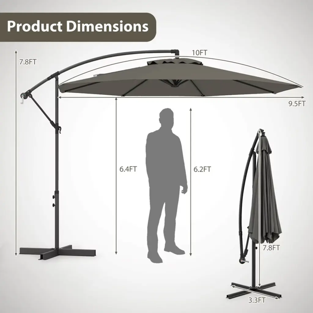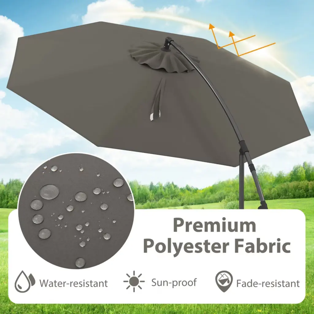 Costway 10 Ft Patio Offset Umbrella W/8 Ribs Cross Base Tilt Grey