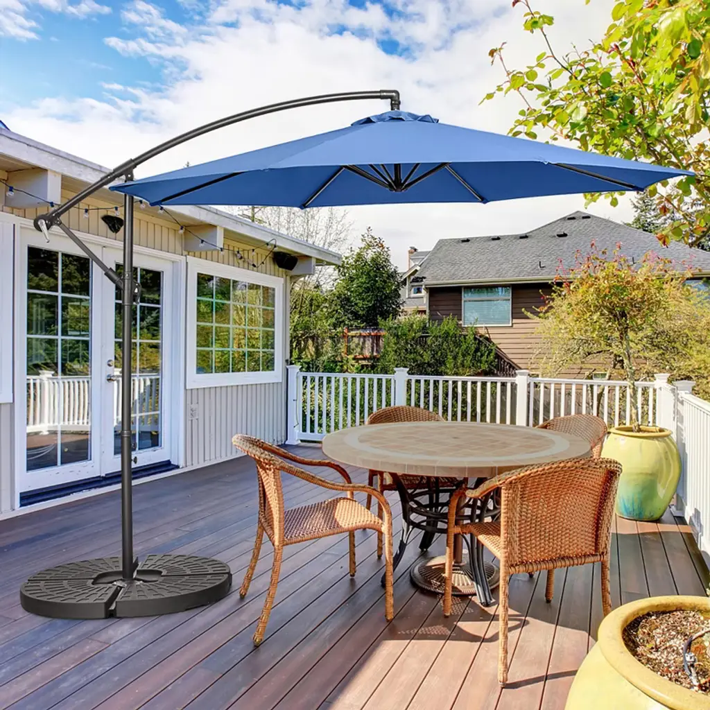 Costway 10 Ft Patio Offset Umbrella W/8 Ribs Cross Base Tilt Navy Blue