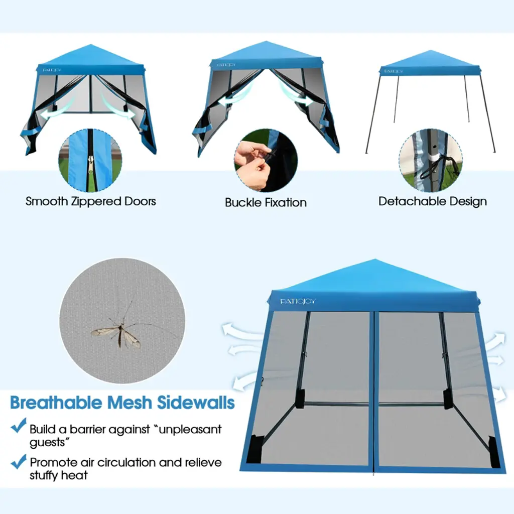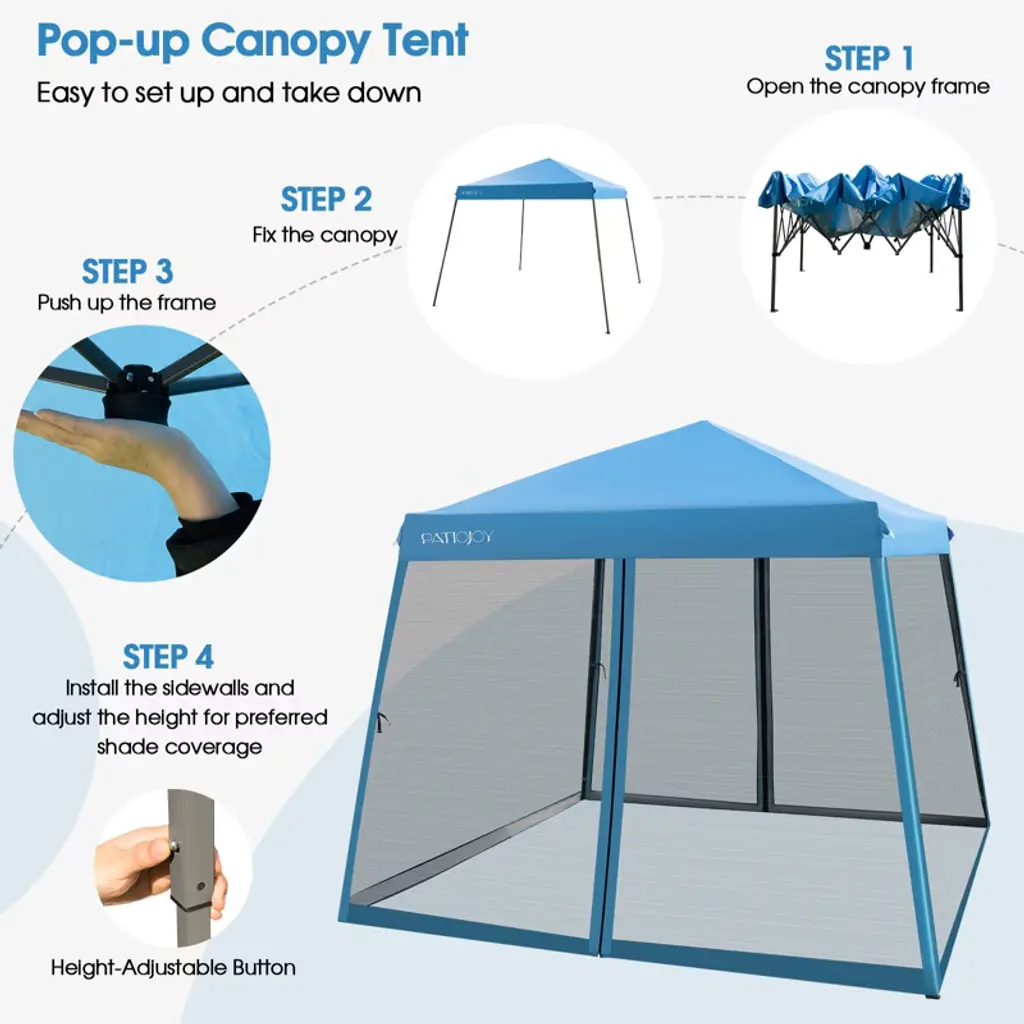 Costway 10x10ft Patio Outdoor Instant Pop-up Canopy Slant Leg Mesh Tent Folding Blue