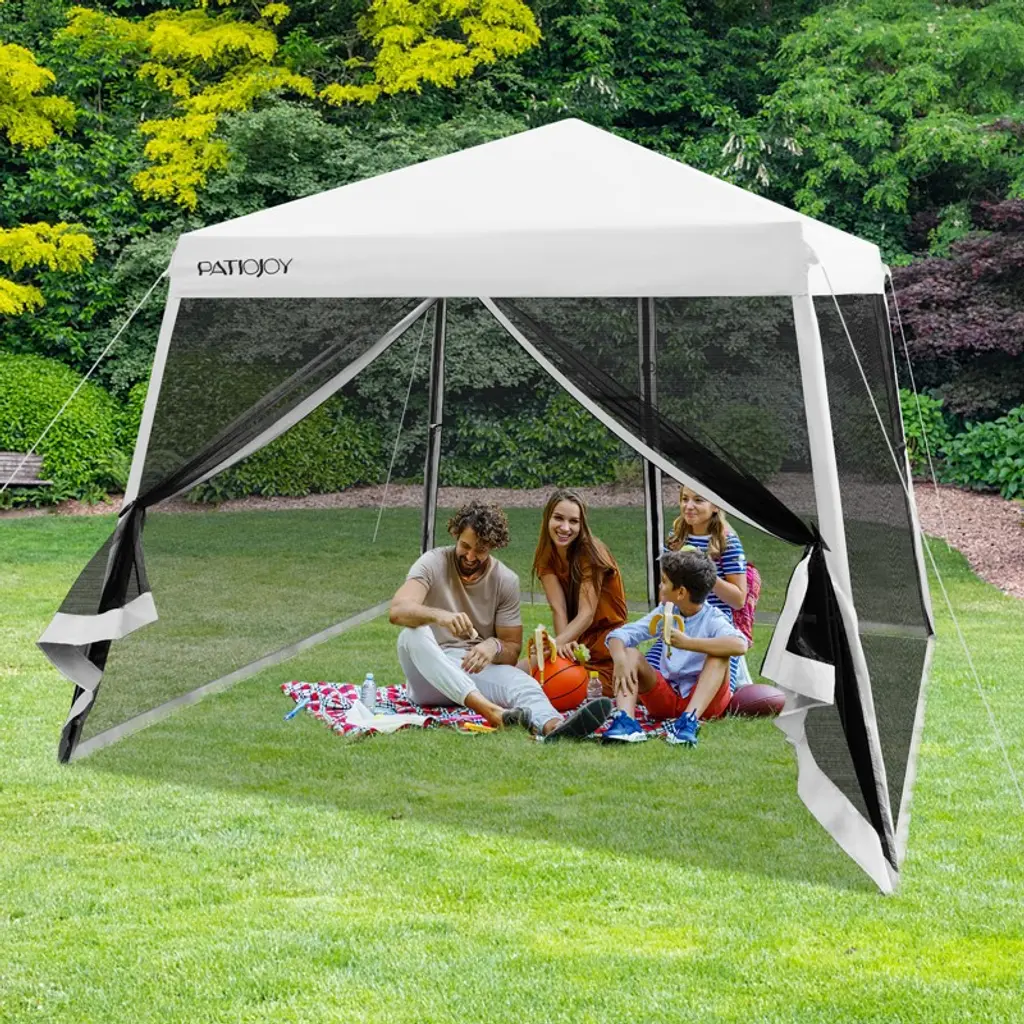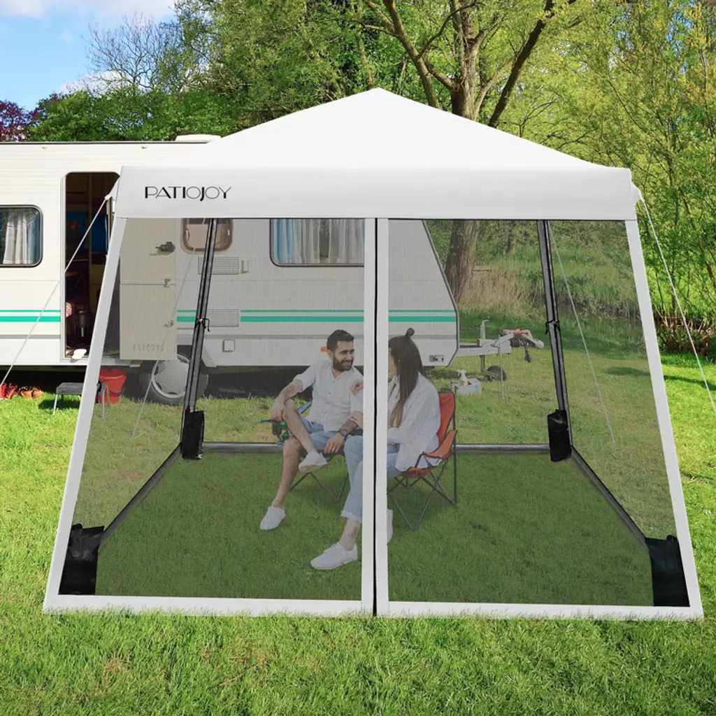 Costway 10x10ft Patio Outdoor Instant Pop-up Canopy Slant Leg Mesh Tent Folding White