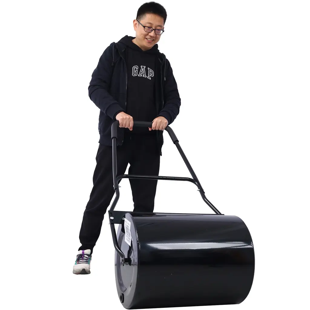 The push/tow lawn roller is ideal for flattening uneven ground caused by moles or frost-heaving, and for packing down newly sown seed or sod. It can be filled with water or sand. Lightweight when empty is easy for transport and storage. The steel drum has rolled rounded edges for the best rolling results that will not damage your lawn when turning. This lawn roller has easy conversion for versatility and convenience. Don’t be hesitated! Come and buy one! You won’t regret it!FeaturesHigh quality and brand new U-handle for comfortable pull and push use Green sprayed surface, smooth surface, not easy to rust, beautiful and fashionable color Drain plug allows adding water or sand Roller drain/fill plug empties easily Lightweight when empty is easy for transport and storage The steel drum has rolled rounded edges for the best rolling results that will not damage your lawn when turning 16 gal with water ideal for flattening uneven ground caused or packing down newly sown seed or sod Assembly requiredMaterial: steel Color: Green and black Dimension: 20''x16''x50''(L x D x H) Net Weight: 21 lbs Approx Weight 155 lbs When Filled With Water Approx Weight 230 lbs When Filled With Sand Package include: 1 x Garden roller 1x Instruction