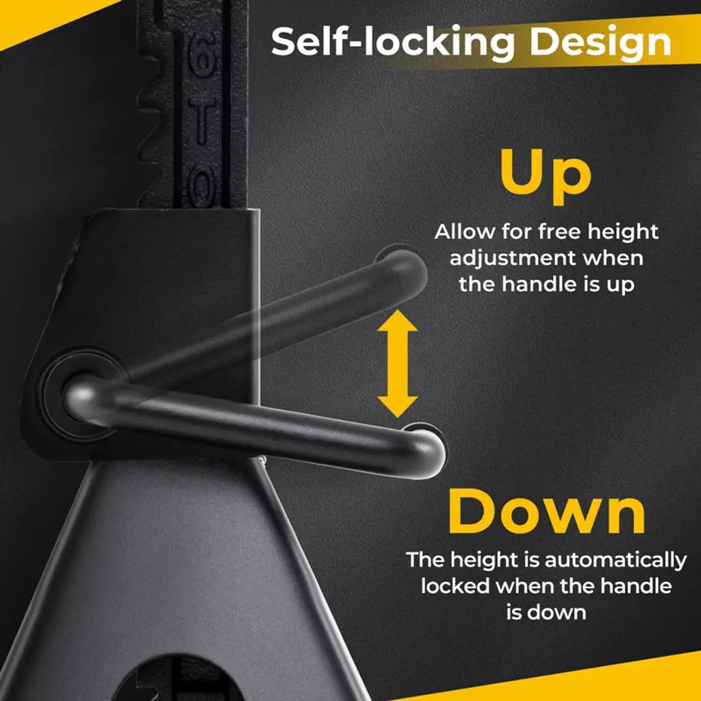 Enhance your vehicle maintenance with our 6 ton jack stands that have been engineered for ultimate safety, functionality and longevity. Each heavy-duty metal jack stand boasts a massive 13,000 lbs lifting capacity, supported by a large saddle surface and a robust pyramid structure for unmatched stability. With an adjustable height range of 14" to 23", our car lifting stands cater to a wide variety of lifting needs, all while ensuring a secure lift with their self-locking handles. Each vehicle lift stand is meticulously crafted through a full welding process, resulting in a long-lasting and reliable tool that meets CE safety standards. Features13,000 lbs loading capacity for different vehicles The height is automatically locked when the handle is down Allow for free height adjustment when the handle is up Find the perfect height to get the job done efficiently with 14-level adjustable height Ratcheting design for smooth and secure height adjustment Meet CE standards for high safety and better quality Ensure a more secure lift thanks to the large saddle surface Sturdy and large base with reinforced support for enhanced stability Add extra stability with the pyramid structure The full welding process endows these jack stands with strength and longevity Rustproof surface for additional durabilityColor: Black Material: Metal Dimensions of Each Jack Stand: 11" x 10" x 14"-23" (L x W x H) Net Weight of Each Jack Stand: 14 lbs Loading Capacity of Each Jack Stand: 13,000 lbs Package Includes: 2/4 x Jack Stands 1 x Instruction