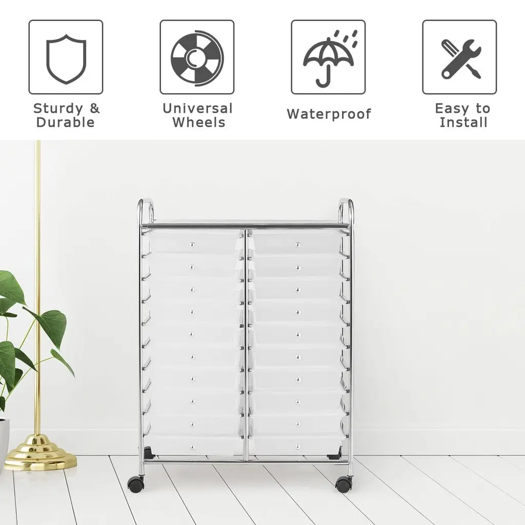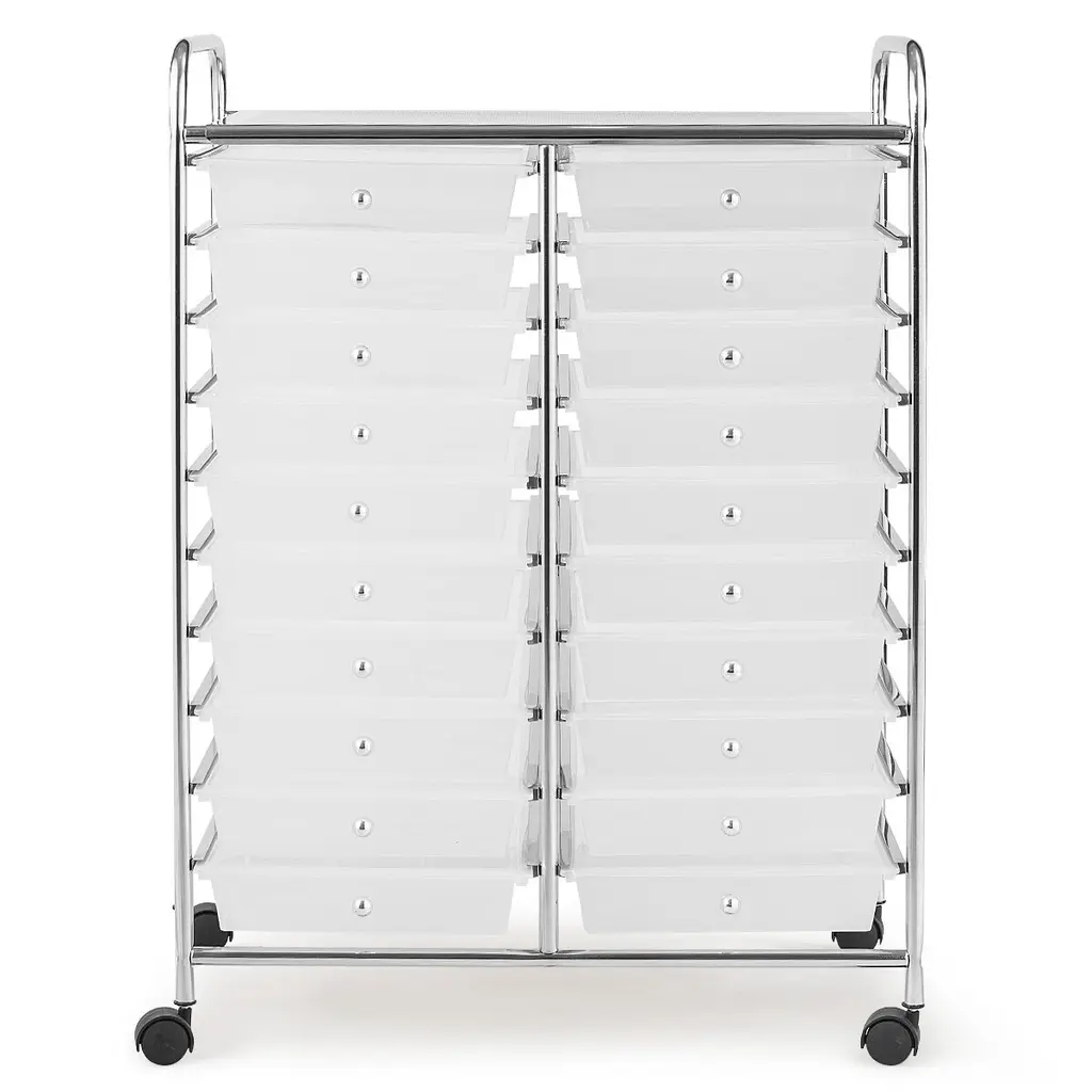 Costway 20 Drawers Rolling Cart Storage Scrapbook Paper Studio - Clear - 25'' X 15'' X 34''