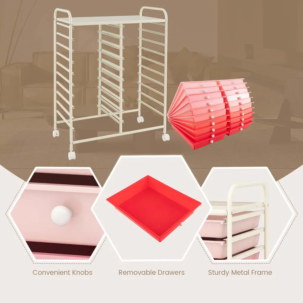 Costway 20 Drawers Rolling Cart Storage Scrapbook Paper Studio - Pink Gradient - See Details