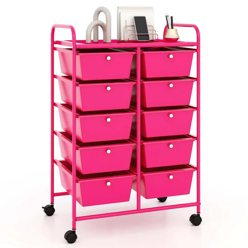 Do you want to have a storage cart which can be rolled smoothly from one place to another? Our 20-drawer rolling storage cart which will provide enough storage space for you.It is great for paper, tools, accessories, crafting, scrap booking or home office, help you to organize and make your tools in order.Constructed of industrial-strength metal tubes and finished in chrome, the cart is sturdy toserve you for a long time. Equipped with easy-to-grab handles and 4 universal wheels, it is easy to move the lightweight cart. And 2 of the wheels have simple lock for stopping easily. With our practical cart, you can store various things from art and office supplies to clean or kitchen essentials.Itis Ideal to arrange your different stuff at office, home, school and garage or just about anywhere organization is needed. Feature20removeable drawers for storage and classify Metal frame and plastic drawers,durable andcan be used for long time 4 universal wheels(2 with lock) for easymovement and fixation Drawers slide through metal channels with noresistance Drawer with handle for easy closing and opening Easy to pull or push the cart with 2 handles on the top Spacious storage space on the top of the cart Ideal drawer storage cart for home, office, garageand school Drawers are easy to clean with soap and a damp cloth Easy to assemble in short time according to instructionSpecificationColor: Multicolor/Black/White/Grey/Macaron/Pink Gradient/Mutli Color Material: iron, plastic Overall size:25''x15''x 34''(LxWxH) Inner Size of Drawer:13''x 10'' x 2.5''(LxWx H) Diameter of wheel: 1.5'' Weight of Cart: 16lbs Maximum Weight of Top: 22lbs Maximum Weight of Drawer: 3lbs Package Include: 1 x 20-drawer rolling cart 1 x instruction