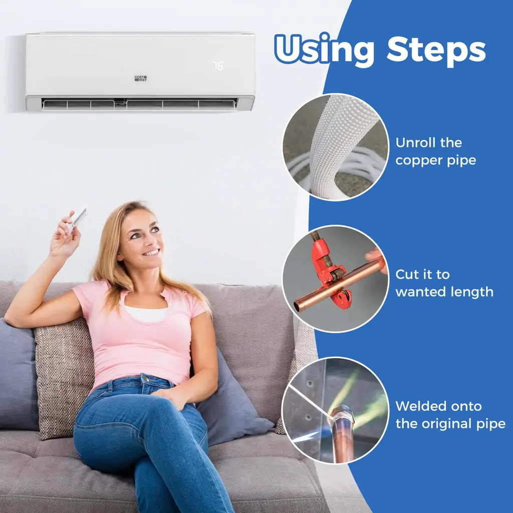 Costway 25/50 Ft Air Conditioning Copper Tubing Hose Extension For - 50 Ft