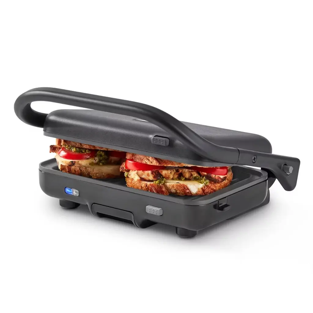 Experience the convenience, versatility and delicious results that our electric sandwich maker brings to your home cooking. Start by exploring a variety of delicious recipes with our efficient double-sided heating, providing crispy waffles in less than 8 minutes. Take advantage of the detachable non-stick plates that not only make transitioning from sandwiches and waffles to grilling seamless, but also assure easy cleanup. Plus, this electric grilled cheese maker tailors every dish to perfection with our 5-gear temperature control, complemented by essential safety features like overheat protection. Note: Please warm up for 1 minute before cooking.FeaturesIdeal for delicious waffles, perfect sandwiches and grilled steaks with 3-in-1 versatile cooking options The double-sided heating ensures that your food is cooked evenly and efficiently on both sides You only need to wait for 1 minute to get it ready for cooking In just 5 to 8 minutes, you can enjoy perfectly crispy waffles The indicator lights provide instant visual feedback on the appliance’s status Red light on: power on, red light off: power off Green light on: cooking, green light off: cooking/preheating completed The 3 plate sets with non-stick surfaces are easy removal for convenient cleaning Allow you to set the perfect heat with 5 different temperature settings Safe to use thanks to overheat protection and ETL certification It has a cool-touch handle that stays safe to touch Anti-slip pads on the bottom keep it stable on your countertop It's designed to be freestanding, so it doesn’t take up too much spaceColor: Black Material: PF, Stainless Steel, Aluminum Folding Dimension: 11.5" x 9" x 5"(L x W x H) Unfolding Dimension: 11.5" x 12" x 11" (L x W x H) Dimension of Each Plate: 11" x 6" (L x W) Cord Length: 26.5" Capacity of Waffle Plate: 0.04 Gal Net Weight: 6.5 lbs Voltage: 120V/60Hz Power: 1082W Package Includes: 1 x Sandwich Maker 2 x Waffle Plates 2 x Sandwich Plates 2 x Grill Plates 1 x Instruction
