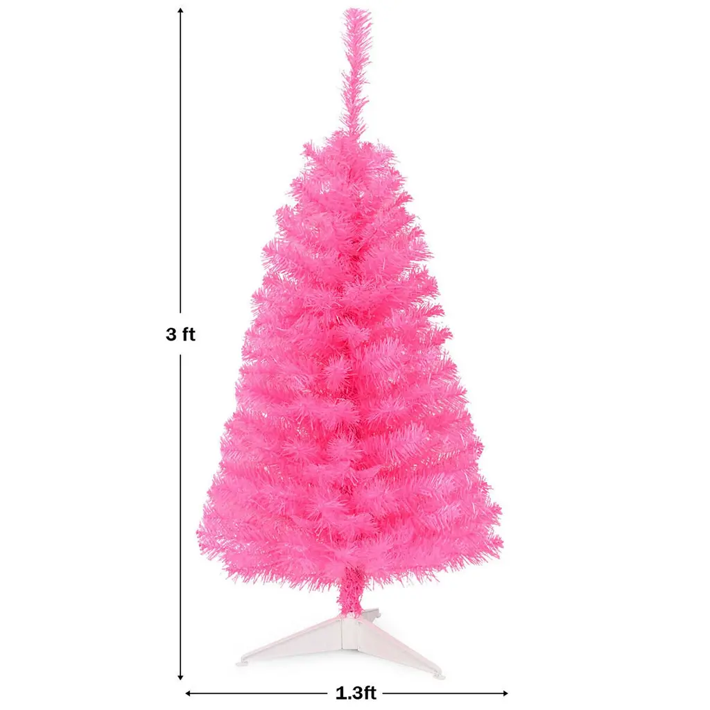 Costway 3Ft Unlit Artificial Christmas Halloween Mini Tree Black With - Pink