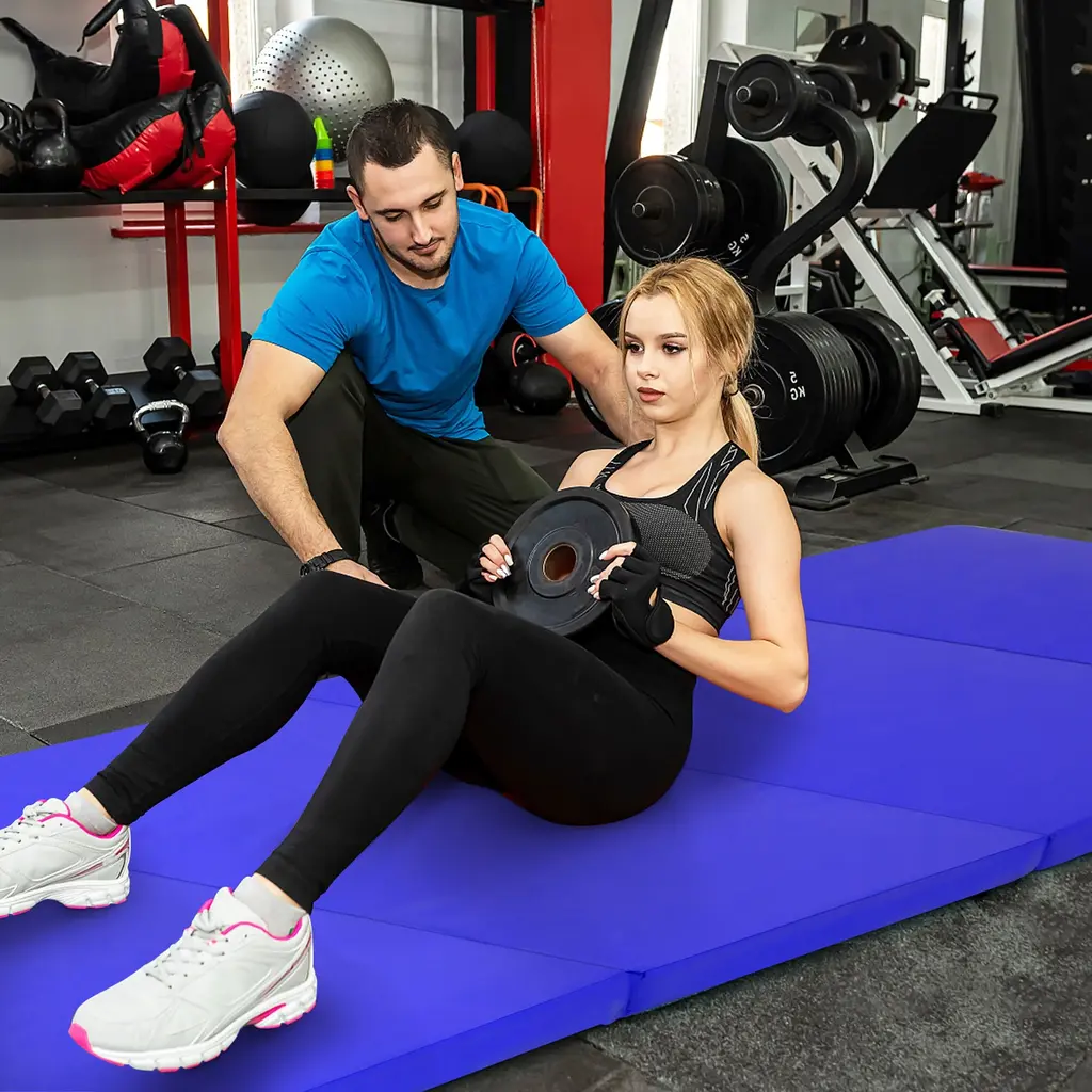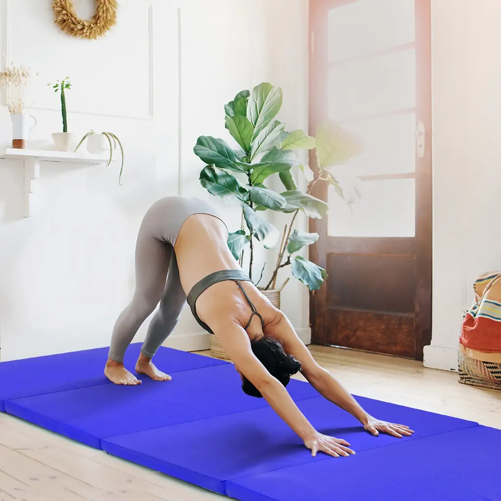 This folding gymnastics mat makes various exercises possible to do anywhere, anytime! This gymnastics mat is made of 2'' thick and high density EPE foam to provide strong support and great comfort for you to do exercises on it. The anti-tear PU leather cover with reinforced stitching ensures long-lasting use. Besides, equipped with a zipper, the cover is removable and easy to clean. The 4-fold design is compact for storage and the built-in handles make for easy carrying. You can take this lightweight thumbing mat to any place you want, no matter whether indoor or outdoor. What's more, the mat is suitable for both kids and adults to do a wide range of sports or play. FeaturePerfect for gymnastics, yoga, stretching and other exercises 2'' thick and soft foam padding offers great support PU leather surface is sweat resistant and easy to wipe clean Humanized zipper design to easily remove the cover Fast folding design for easy storage and transportation Easily combined with more mats with hook and loop fasteners 2 handles make it easy to carry and move Suitable for both indoor and outdoor use Meticulous stitching resists tearing for long-term useSpecificationColor: Blue/Navy Material: PU, EPE Foam Product Dimensions: 8' x 4' x 2'' (L x W x H) Folded Dimensions: 4' x 2' x 8.5'' (L x W x H) Net Weight: 13 lbs Weight Capacity 200 lbs Package Includes: 1 x Folding Gymnastics Mat