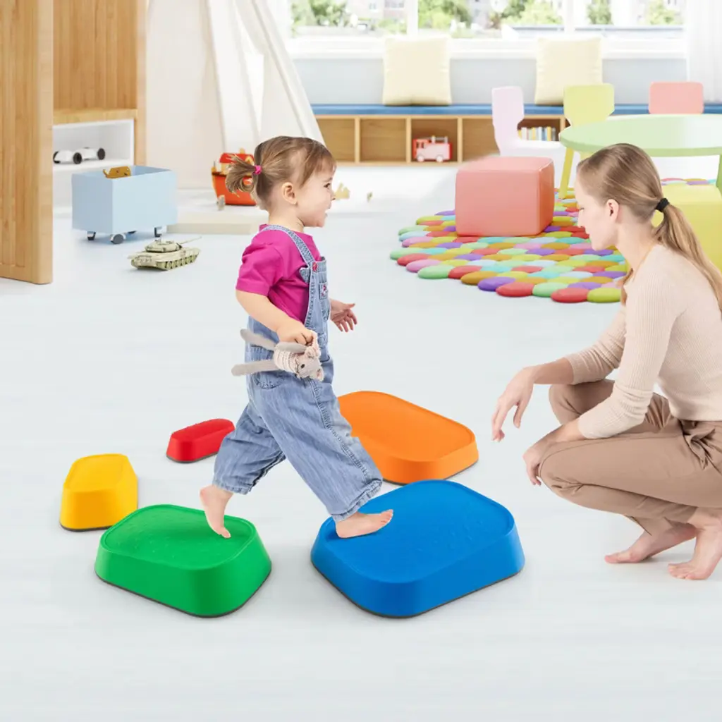 Unleash hours of imaginative and active play with our 5-piece balance stepping stones! These brightly colored and varied-sized balance blocks are designed to spark children’s imagination and challenge their physical skills. Each stone boasts a textured surface and anti-slip full TPE rim, ensuring a secure grip for both indoor and outdoor play. Made from premium PP material, these sensory stepping stones are child-safe, non-deformable, and easy to clean. When not in use, they can be stacked neatly for space-saving storage. Ideal for children aged 3+, these stepping stones not only enhance coordination and balance but also promote color recognition and logical thinking. Perfect for every curious and energetic child ready to jump, walk, and climb their way to fun and learning!Features5 colorful stepping stones in various sizes offer an engaging way for kids to play Non-slip surface with protruding dots and full TPE rim for a secure grip Crafted from premium PP material that is child-safe and built-to-last Waterproof surface allows for effortless cleaning Stackable design allows for neat and easy storage while also saving space Can be used on various surfaces like hardwood floor, carpet, lawn, or sand Help promote color cognition, balance training, logical thinking, and fun interaction Each stepping stone can support up to 177 lbs Suitable for indoor and outdoor play An ideal gift for kids aged 3+Color: Multi-color Material: PP, TPE Overall Dimensions: 14.5" x 10.5" x 11" (L x W x H) Height of Each Stepping Stone: 2.5"/3"/3"/3.5"/3.5" Suitable Age: 3+ Weight Capacity of Each Stepping Stone: 177 lbs Net Weight: 3.5 lbs Package Includes: 1 x 5 Pcs Kids Stepping Stone Set 1 x User Guide