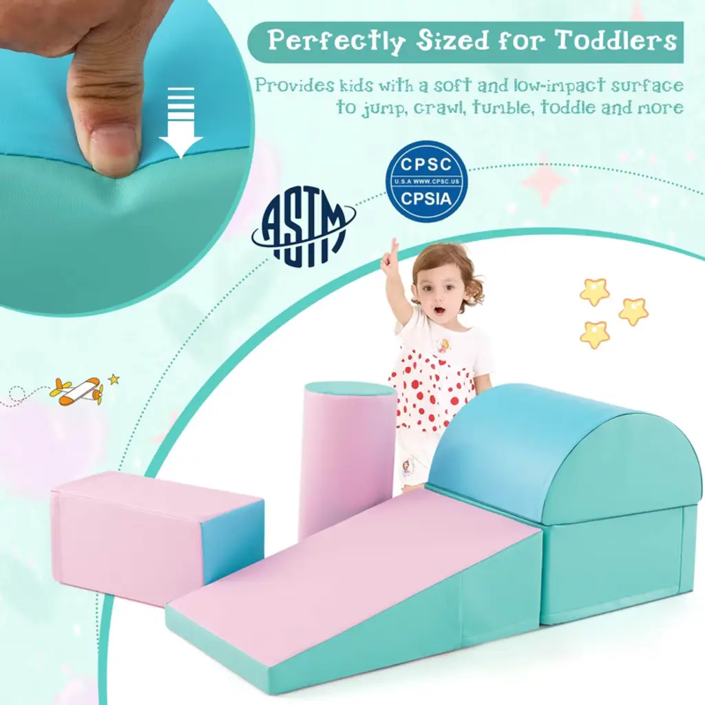 Costway 5 Pcs Kids Climb & Crawl Activity Playset Soft Foam Block Toddler Play Structure Green