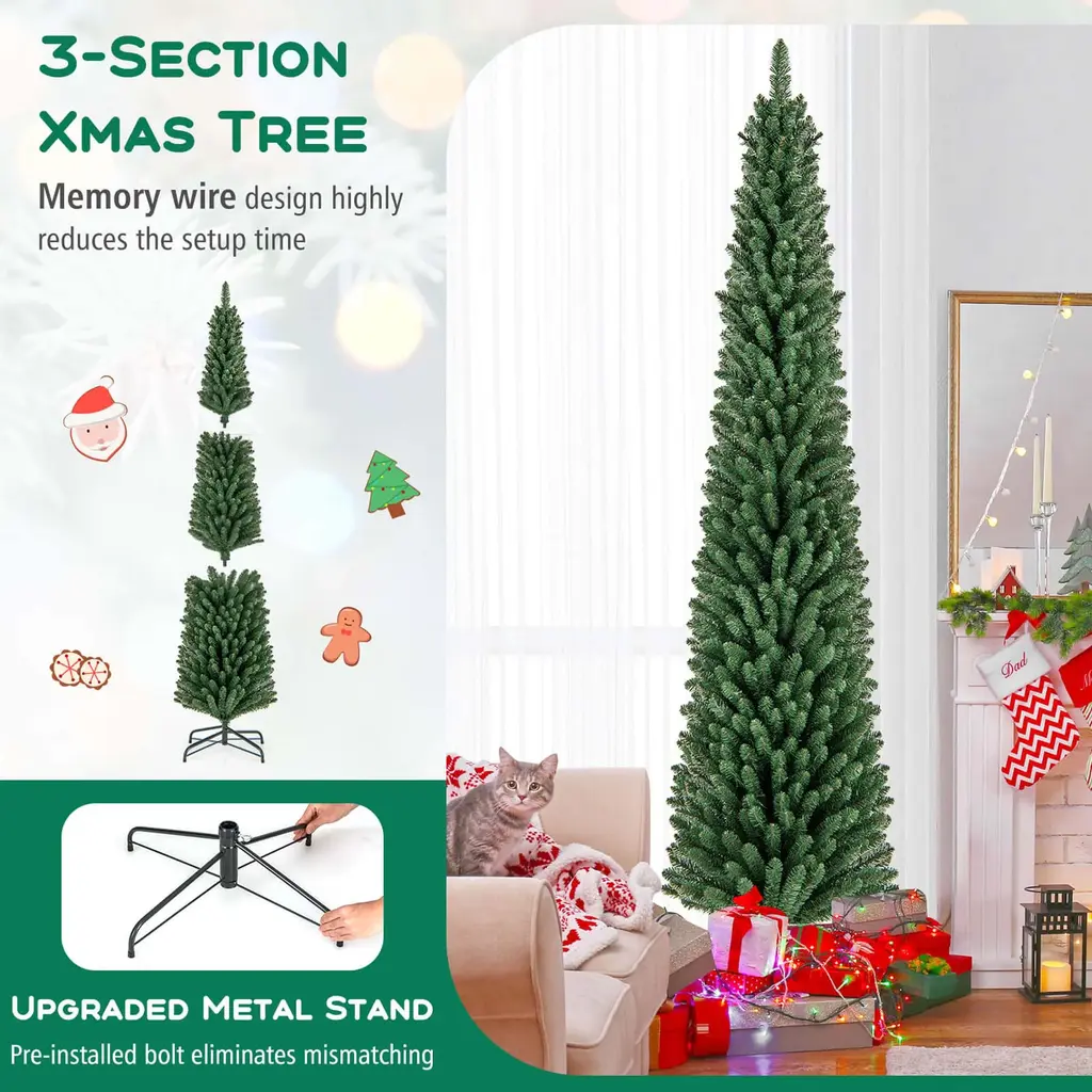 Costway 5/6/7/8 Ft Pencil Christmas Tree Artificial Xmas Tree With - 8 Ft - 8 Foot