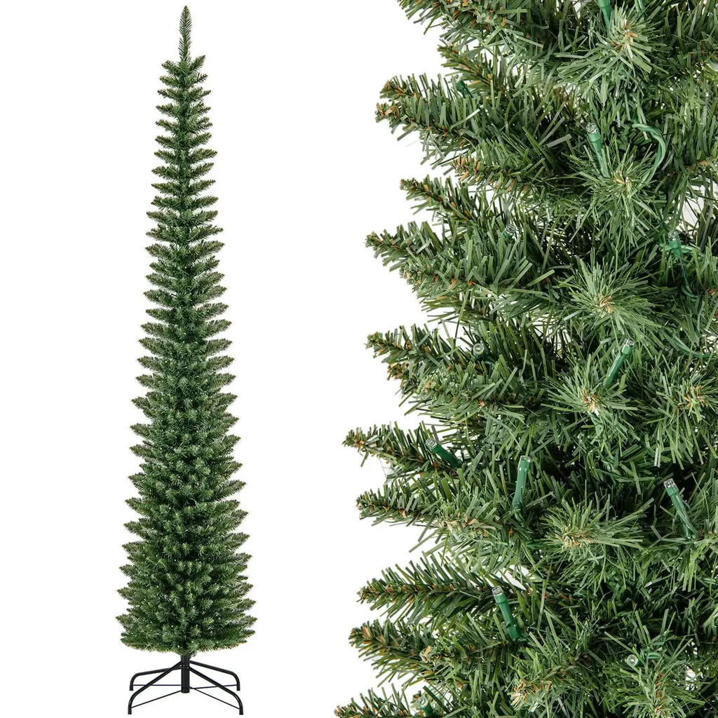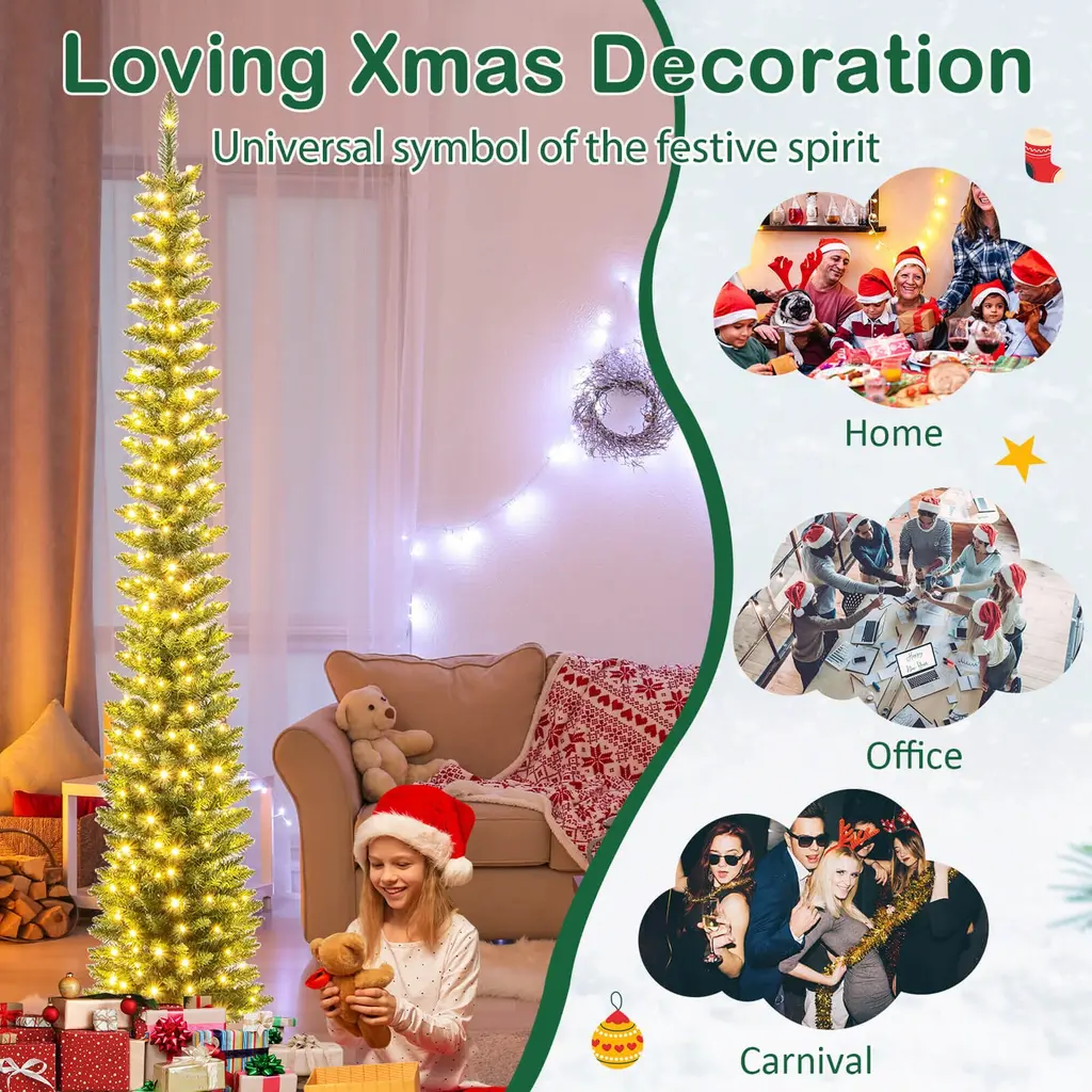 Costway 5/6/7/99 Ft Pre-Lit Pencil Christmas Tree With 400 Led Lights - 8 Foot