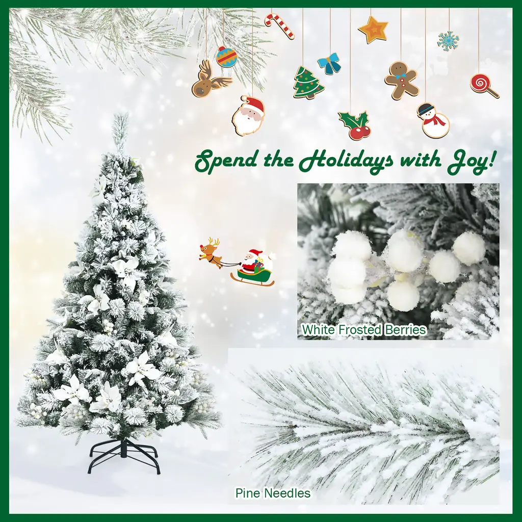 Costway 5Ft/6ft/7ft/8ft Snow Flocked Hinged Christmas Tree W/ Berries - 7 Foot