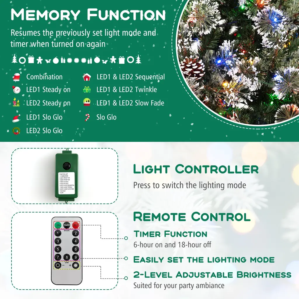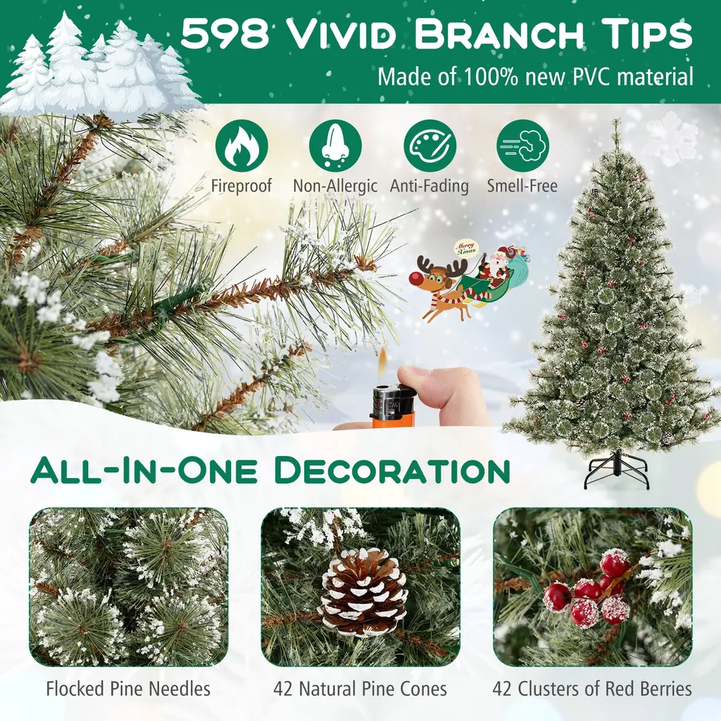 Experience the magic of the 6/7.5/9 ft Christmas tree, which is easy to set up with quick power connectors and a hinged structure. The Xmas tree boasts 598/1086/1714 lush branch tips that are crafted from anti-fading, smell-free, fireproof, and non-allergic PVC. Dive into its natural charm, embellished with flocked pine needles, natural pine cones, and red berries. This tree features 350/530/690 safe, energy-saving LED lights that offer 2 lighting colors. Besides, it comes with 9 lighting modes, including LED2 steady on, LED1 slo glo, LED2 slo glo, LED1 & LED2 sequential, LED1 & LED2 twinkle, LED1 & LED2 slow fade, etc. Together with an auto timer and 2-level brightness, the Xmas tree is perfect for personalized decoration. In addition, the Christmas tree has a folding metal stand with a preinstalled bolt for ideal hole alignment, while the anti-slip foot pads avoid scratching the floor. Merry Christmas!FeatureEasily connect tree sections without worrying about tangled wires 598/1086/1714 vivid branch tips are made of 100% new PVC material Pine needles, natural pine cones, and red berries for a lifelike appearance 350/530/690 LED lights offer 2 color options, including warm white and multi-color Has 9 lighting modes, such as combination, LED1 steady on, slo glo, and more Resumes the previously set light mode and timer when turned on again Provides 2-level adjustable brightness that is suited for your party ambiance Features a timer function for 6-hour on and 18-hour off Comes with a remote control to easily set the lighting mode Hinged structure makes branches expand automatically Equipped with a secure adaptor that is UL certificated Boasts an upgraded metal base to ensure reliable support in different locations Wonderful lighting show for your home, office, shop, school, carnival, etc Please note that ornaments are not includedSpecificationColor: Green Material: PVC, Metal Tree Height: 6/7.5/9 ft Tree Width: 3.8/4.8/5.4 ft Diameter of the Metal Base: 20/24/25.5" Number of Branch Tips: 598/1086/1714 Number of LED Lights: 350/530/690 Number of Pine Cones: 42/60/82 Number of Red Berries: 42/60/82 Number of Sections: 2/3/4 Net Weight: 18.5/30.5/46 lbs Package Includes: 1 x Pre-Lit Artificial Christmas Tree 2 x Pairs of Gloves 1 x User’s Manual