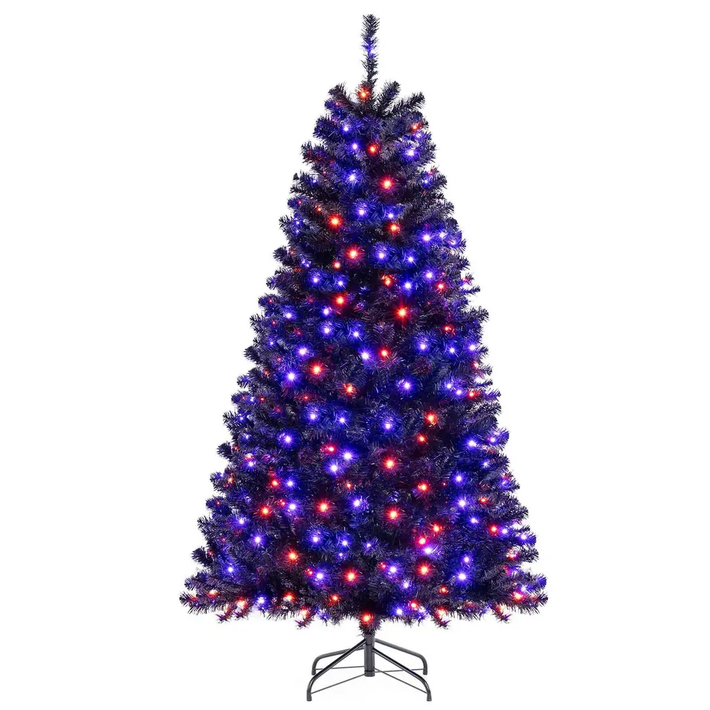 Embrace the spooky season with an 6/7/8 ft Halloween tree adorned with 758/1040/1458 black branch tips, offering a lush and full appearance. Crafted from new PVC materials, this decoration tree is fireproof, non-allergic, anti-fading, and smell-free. Decorate your daytime or nighttime celebrations with 280/380/500 orange and purple LED lights. The Halloween tree showcases 6 eerie lighting modes and atmospheric music, including mode 1: combination, mode 2: creaking door & ghost scream + flash, mode 3: ghost laughter + twinkle, mode 4: wolf howling & ghost laughter + flash & slow flash, mode 5: ghost speaking + flash & slow fade, and mode 6: steady on. The celebration tree includes a secure UL-certified adaptor for safe usage and an advanced infrared sensor that triggers lighting within 16.4 ft. The decoration tree is easy to set up with a hinged structure and folding metal stand. It is also complete with 2 pairs of gloves for protection. More user-friendly details await your discovery.Feature758/1040/1458 luxuriant branch tips are made of 100% new PVC 280/380/500 purple and orange LED lights display a spooky spectacle Unique sound effects on all lighting modes except one Infrared sensor ensures the lights urn on as soon as someone approaches Using safety is well ensured by the UL certificated adaptor Branches expand automatically, thanks to the hinged connections Divided into 3 sections, making it convenient for storage Upgraded metal stand with a preinstalled bolt for perfect hole alignment Adapting to every festive setting, including Christmas and Halloween Versatile decoration tree for your home, office, shop, and more Please note that ornaments are not includedSpecificationColor: Black Material: PVC, Metal Tree Height: 6/7/8 ft Tree Width: 3.2/3.8/4.3 ft Diameter of Stand: 18”/20"/24" Number of Branch Tips: 758/1040/1458 Number of LED Lights:280/380/500 Number of Sections:3 Remote Distance: 16.4 ft Net Weight: 13/19/26 lbs Package Includes: 1 x Halloween Tree 2 x Pairs of Gloves 1 x User Guide