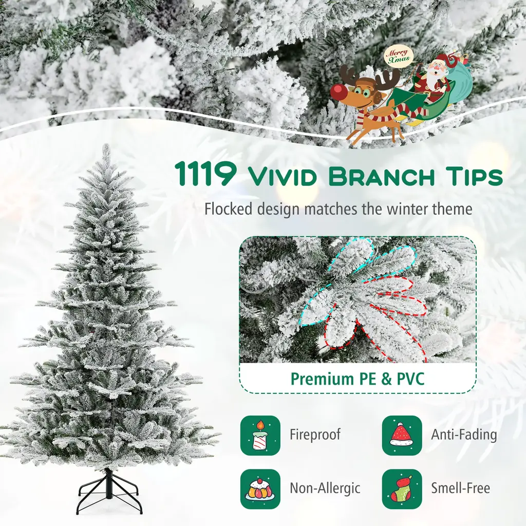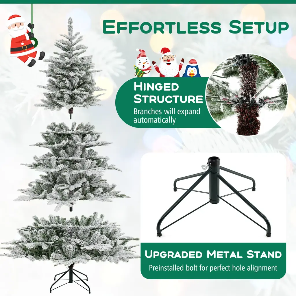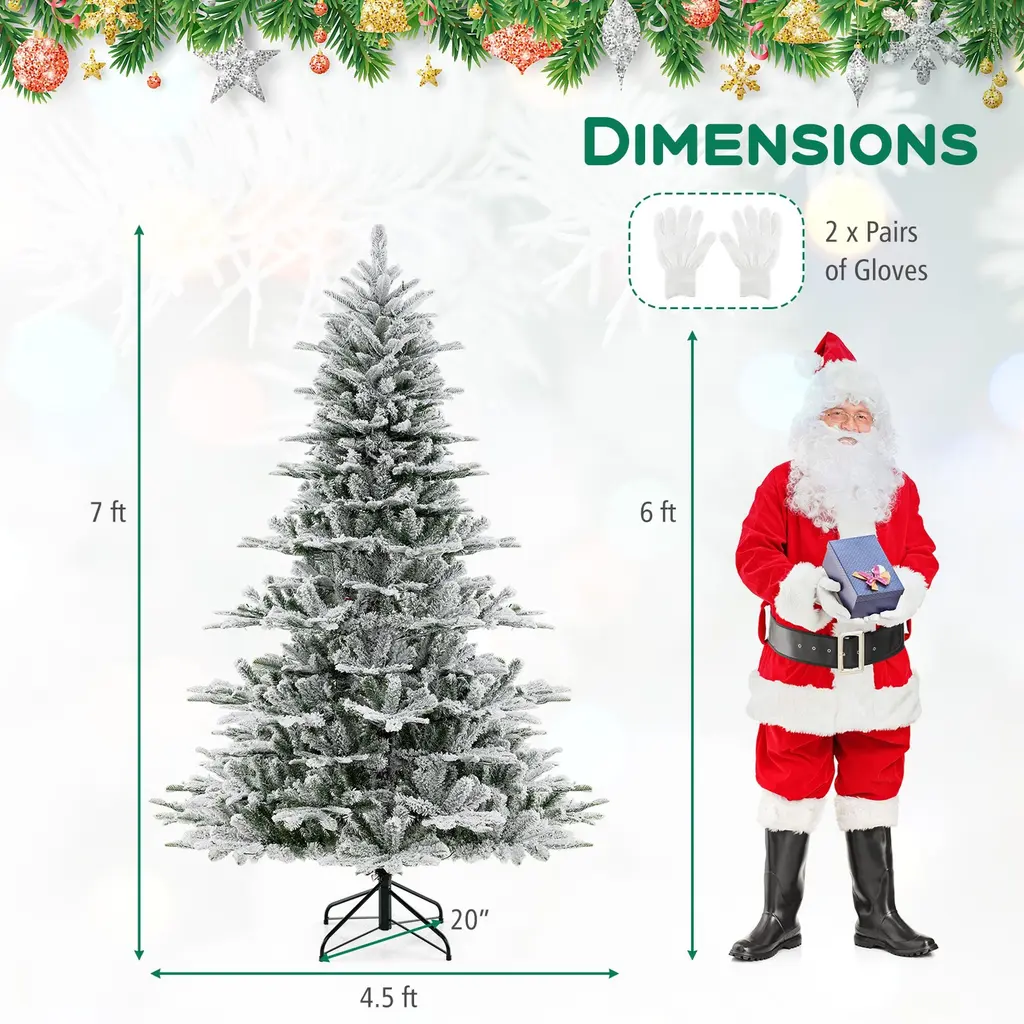 Costway 6/7/8 Ft Snow Flocked Artificial Christmas Tree With - 7 Ft - 7 Foot