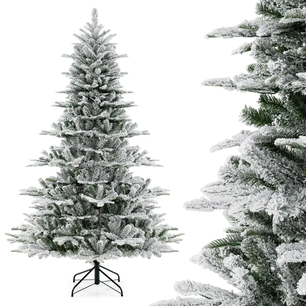 Transform your home into a winter wonderland with the 6/7/8 ft Xmas tree. With 661/1119/1447 lush flocked branch tips, this Christmas tree resembles a snow-covered paradise. Crafted from premium PE and PVC, it is enduring, safe, and realistic. The Xmas tree is adorned with 500/620/800 cold white LED lights that offer 3 dazzling lighting modes and adjustable brightness, controlled by a convenient remote or manual controller. This tree upgrades your Christmas ambiance. An auto timer ensures energy efficiency. Setting up is a breeze with the intuitive hinged design and pre-installed bolt on the folding metal stand. 2 pairs of gloves are included for easy assembly. Delight all your guests with this enchanting Xmas tree.FeatureHas 661/1119/1447 vivid branch tips that are made of premium PE and PVC Flocked design matches the winter theme, making it a focal point Fantastic lighting show with a secure adaptor that is UL certificated Up to 500/620/800 LED lights emit a cold white glow and are energy-saving Supports dual control ways, including the light controller and the remote control Boasts 3 lighting modes, including steady on, flashing, and slow fade Provides a timer function that ensures 6-hour on and 18-hour off Features 2-level adjustable brightness, perfectly suited to your mood Thanks to the hinged structure, branches will expand automatically Upgraded metal stand with a preinstalled bolt for perfect hole alignment Allows for wide use in your office, shop, school, carnival, and moreSpecificationColor: Green+White Material: PVC, PE, Metal Tree Height: 6/7/8 ft Tree Width: 4.1/4.5/5 ft Diameter of the Metal Base: 18/20/24" Number of Branch Tips: 661/1119/1447 Number of LED Lights: 500/620/800 Number of Sections: 3 Net Weight: 19.5/27/33 lbs Package Includes: 1 x Pre-Lit Artificial Christmas Tree 2 x Pairs of Gloves 1 x User’s Manual