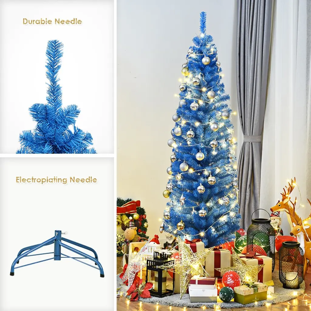 Costway 6Ft Tinsel Tree Slim Pencil Christmas Tree Silver Champagne - Blue