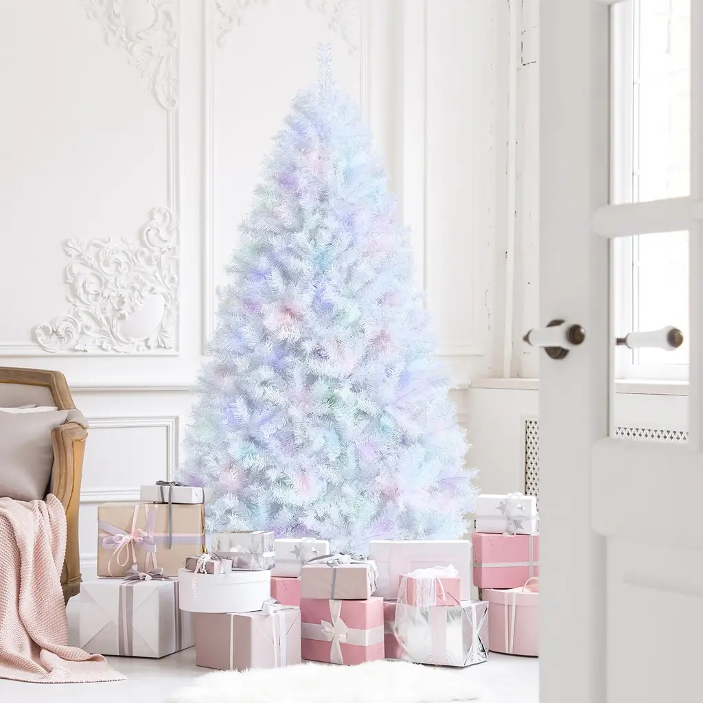 Costway 7Ft White Iridescent Tinsel Artificial Christmas Tree With - See Details - White - 7 Foot