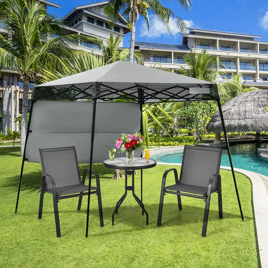 Costway 7X7 Ft Slant Leg Pop-up Canopy Tent Shelter Adjustable Portable Carry Bag Gray