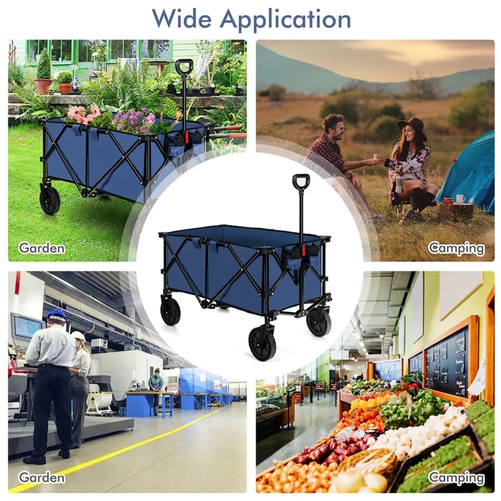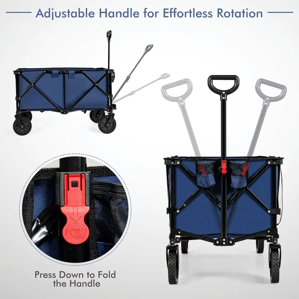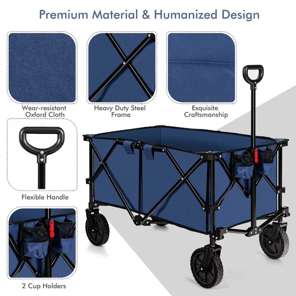 Costway Folding Collapsible Wagon Utility Camping Cart W/wheels & Adjustable Handle Navy