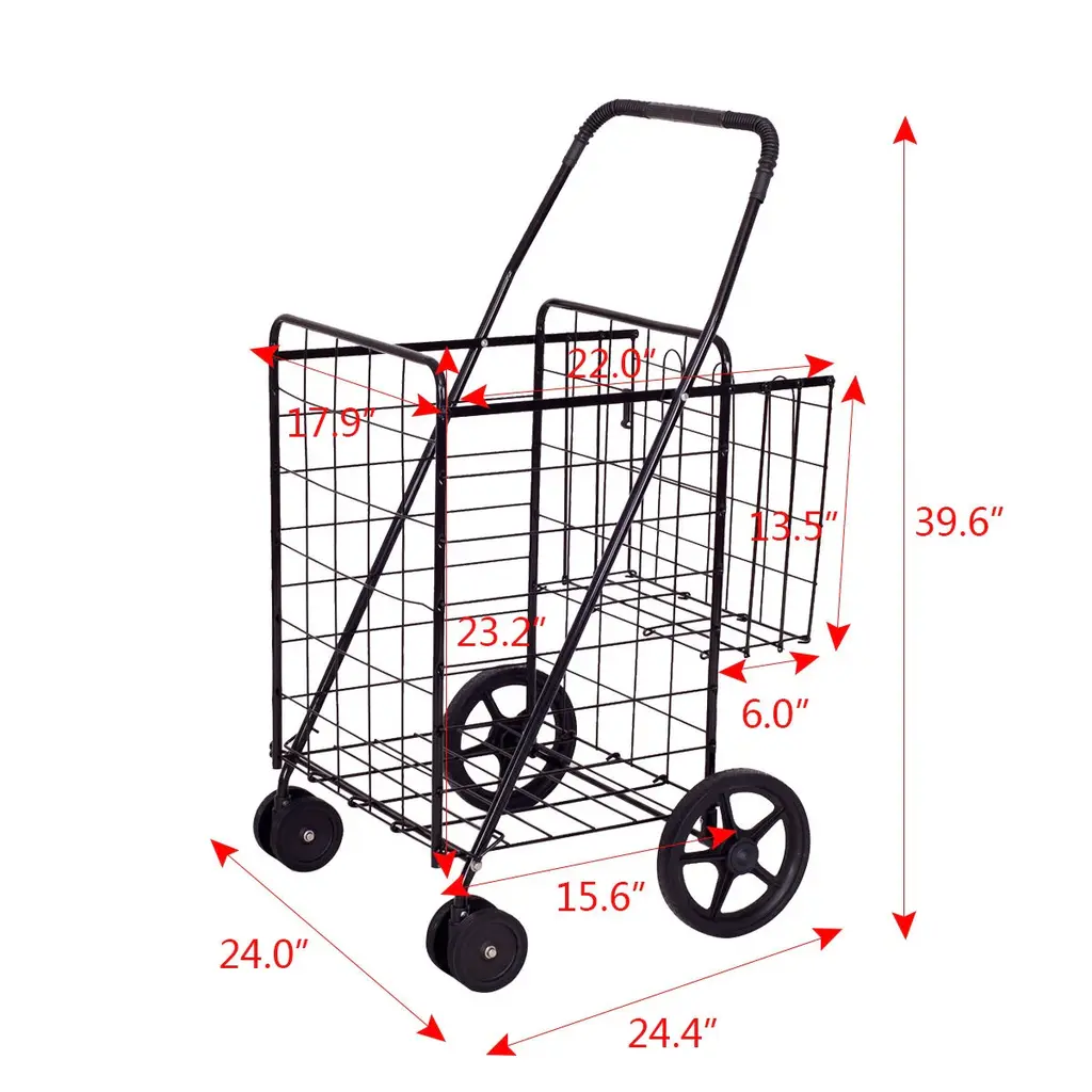Costway Folding Shopping Cart Jumbo Basket Grocery Laundry Travel W/ - 24.4'' X24.0'' X 39.6'' - Black - 24.4'' X24.0'' X 39.6''