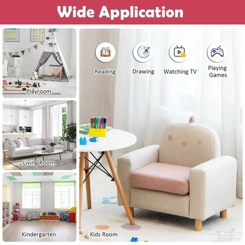 Costway Kids Chick Sofa Wooden Armrest Chair Couch W/ Thick Cushion Beech Legs Gift