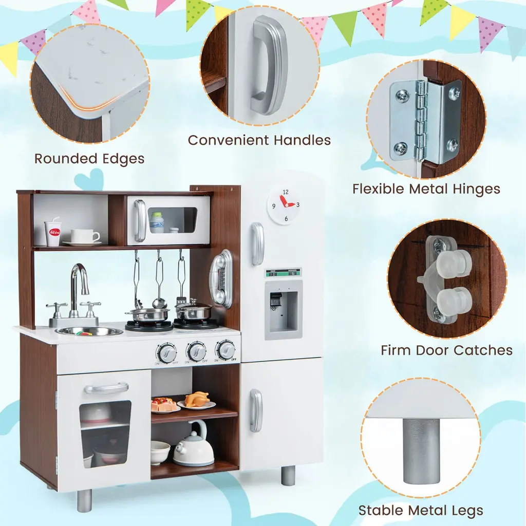 Costway Kids Kitchen Playset Pretend Play Kitchen Toy With Realistic - See Details - White & Brown - See Details