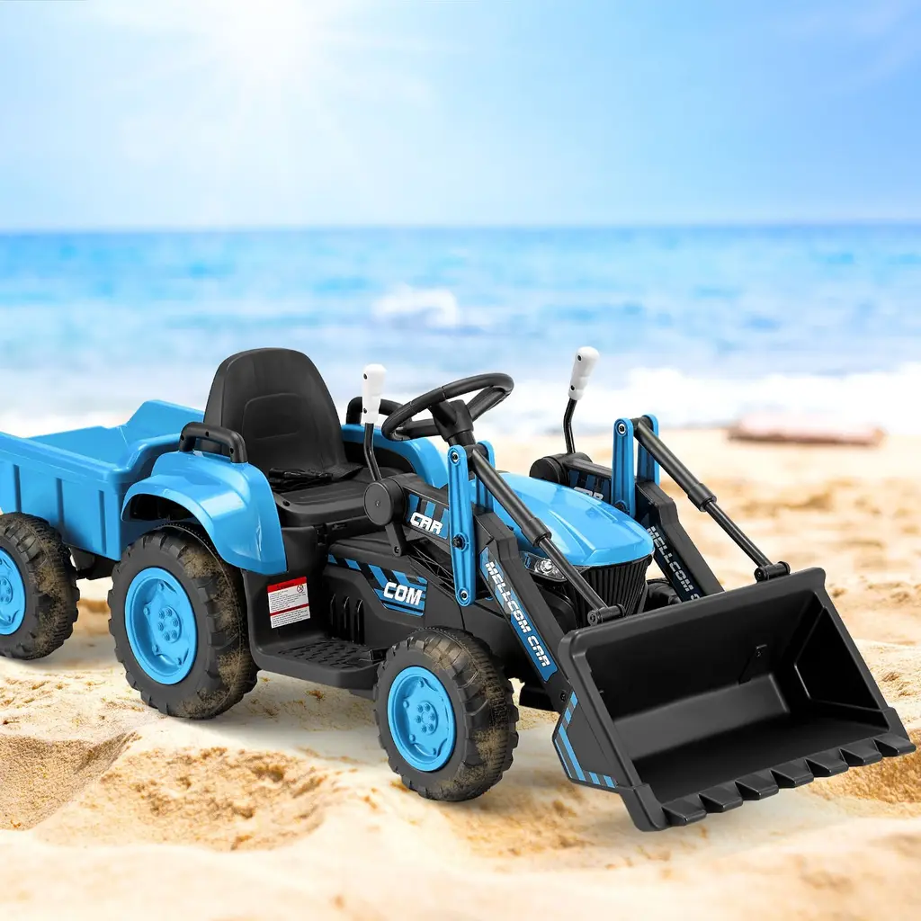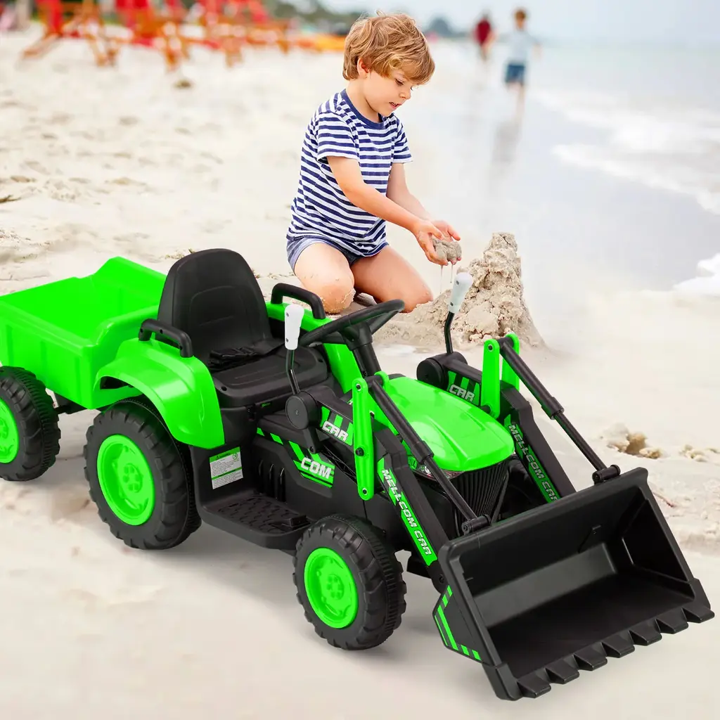 This is our latest fantastic and functional pedal powered kids ride on excavator for your lovely children. It provides a realistic styling and real working bucket for loads of fun. This fully-equipped front loader will move up and down, bucket in and out when your little builder controls handles. The excavator could suit for digging sand, snow, even toys. Don't hesitate to buy one! Help to build your kid's physical skills and behave confidently.FeatureHigh impact blow molded resin body, non-toxic & easy-to-clean material Kids ride on glorified toy, pretend play to mimic adult construction Working front loader & tipping digger bucket, scooping, lifting, carrying and dumping Pedal powered with an easy-to- operate handle, convenient for moving and digging Comfortable & spacious seat with safety belt, providing a safe driving environment A good load-bearing of digger bucket, the maximum load capacity of 66 lbs Functions of forward, backward, stop & high/low speed to dig sand, snow, even toys Suitable for children with age from 37 to 96 monthsSpecificationMaterial: Plastic, ironware Size: 59'' x 24.5'' x 29.5'' (L x W x H) Weight: 39 lbs Load Capacity: 66 lbs Ambient Temperature: 0-40 degree centigrade Speed: 2.5 km/h- 5km/h Battery: 6V 7AH *2 Charging Period: 8-12 Hours Each Time Package includes: 1 x Kids ride on excavator 1 x Charger 2 x Rechargeable Battery 2 x Motors 1 x Instruction