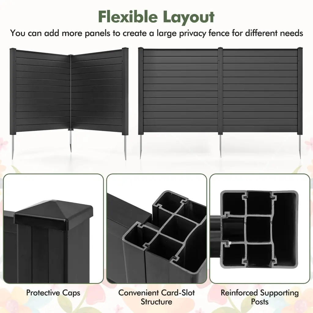 Costway Outdoor 48"l X 48"h Pvc Privacy Fence Panels With Metal Ground - See Details - Black