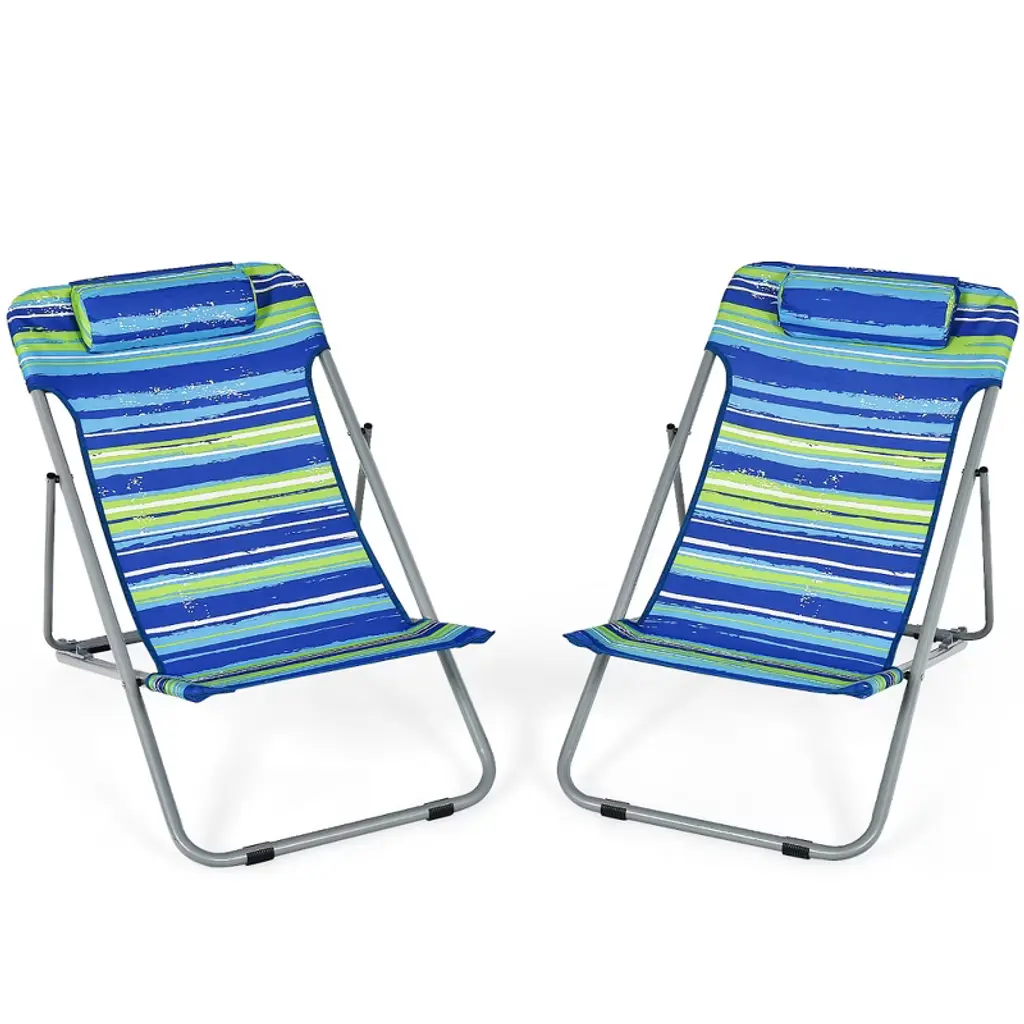 Costway Set Of 2 Beach Chair Portable 3-position Lounge Chair W/ Headrest Blue