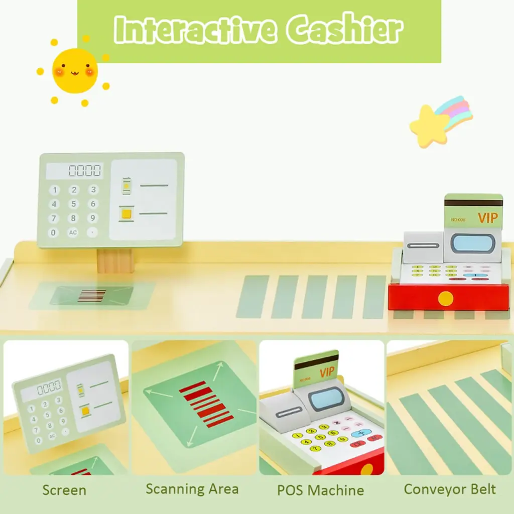 Costway Wooden Supermarket Play Toy Set Kids Grocery Store Playset With Checkout Counter Green