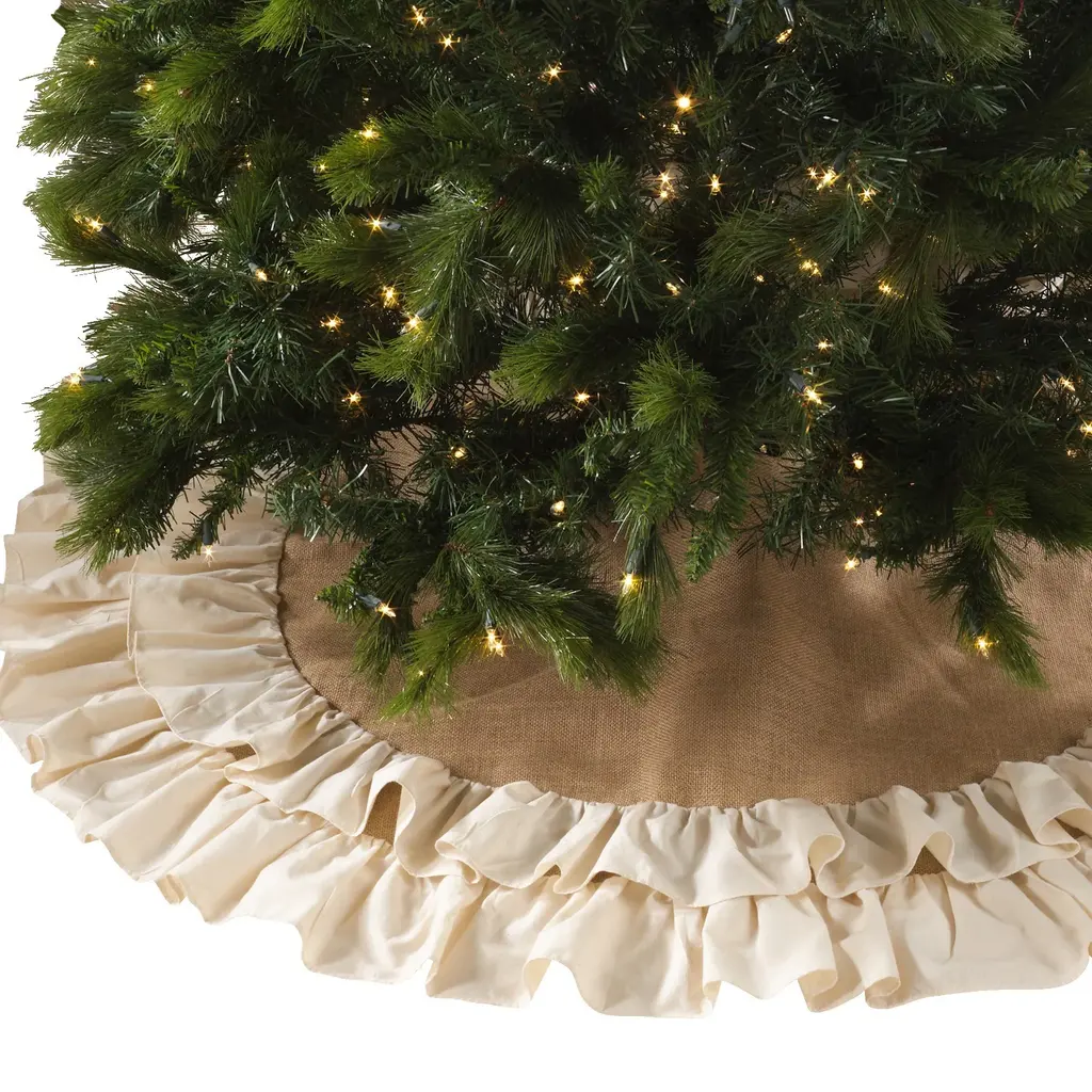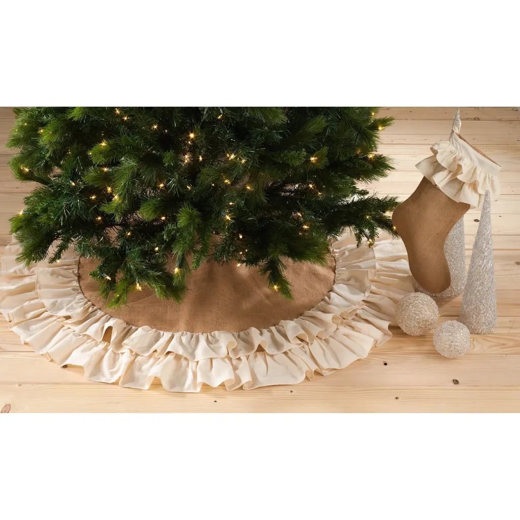 Cotton And Jute Ruffled Tree Skirt - 72"x72"