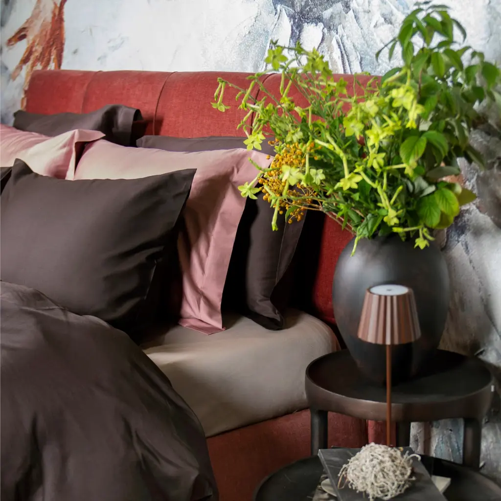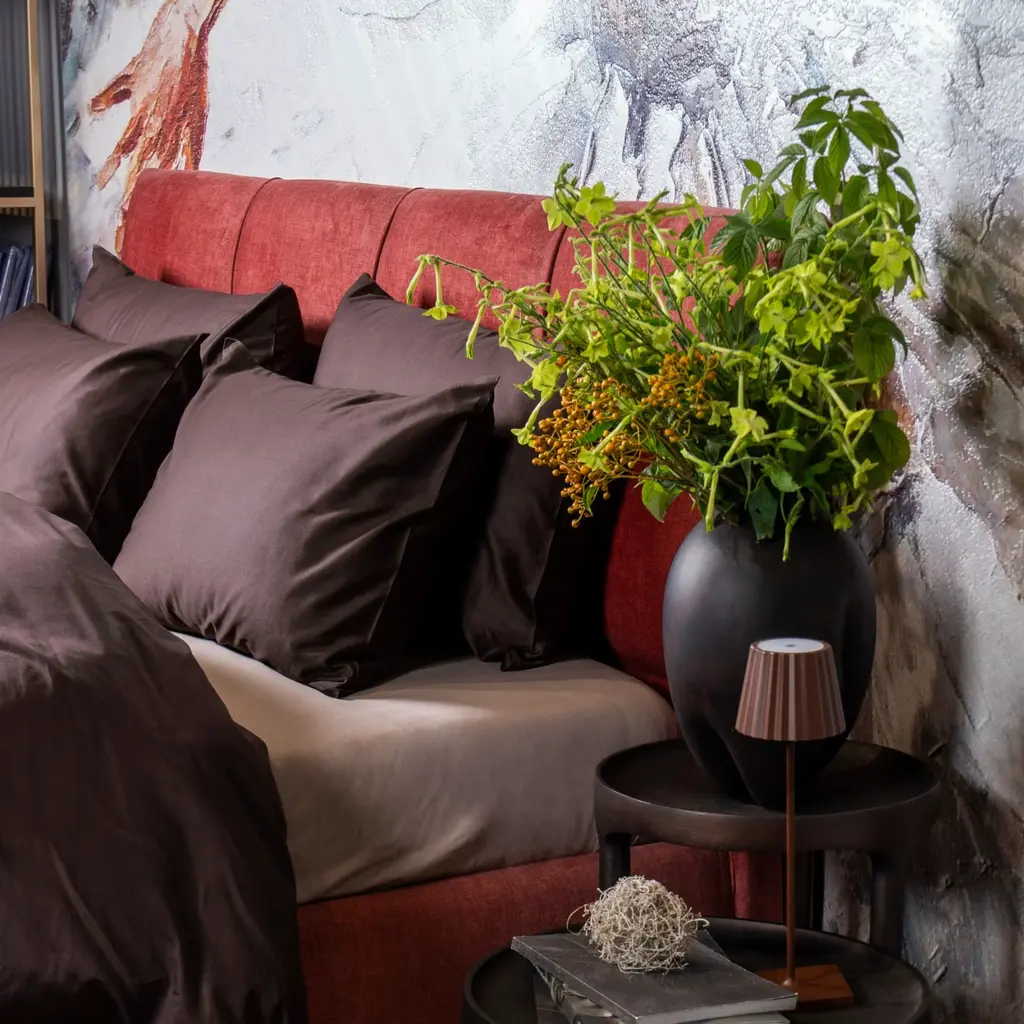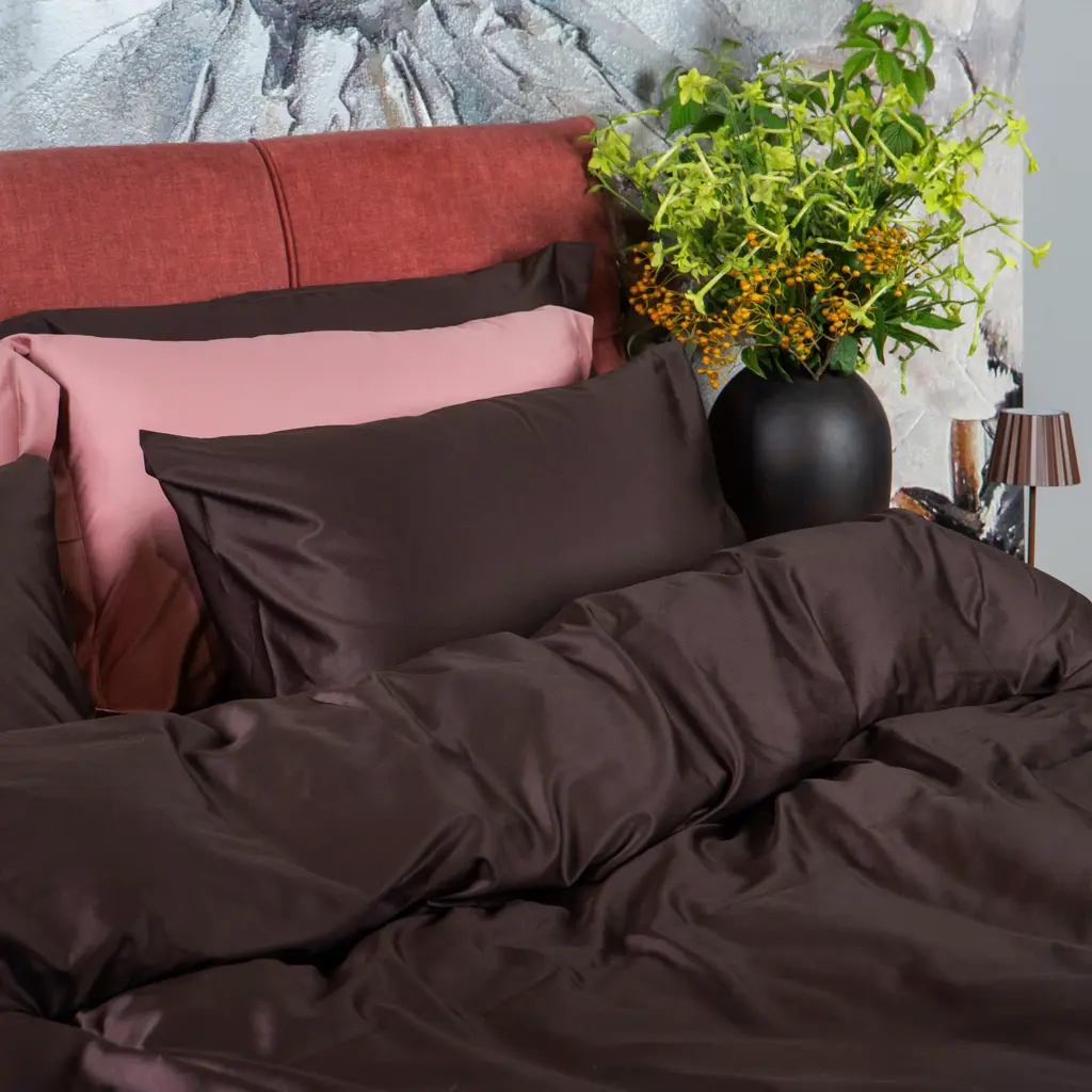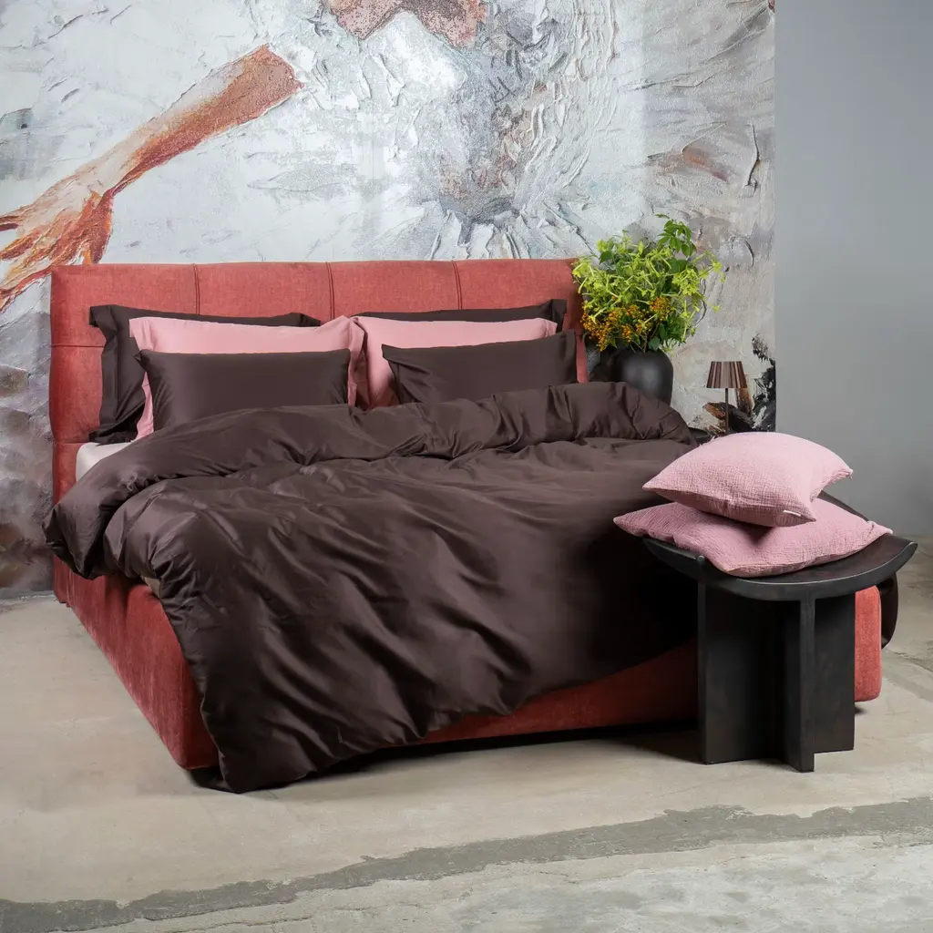 Solid Chocolate Oud will bring elegance and tranquility to your bedroom. This brownish shade creates a calm and balanced atmosphere that is reminiscent of natural minimalism and gives the space a sense of calm and subtle contemporary style.The long-fiber cotton sateen with a TC300 weaving density is designed for durability. Cotton sateen is a natural material with a natural shine, soft to the touch, and very easy to care for.