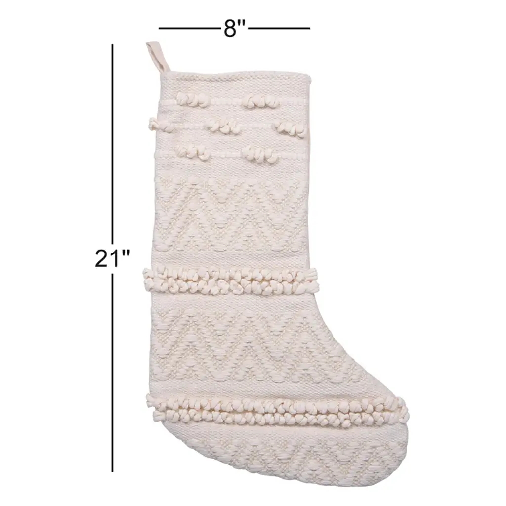 Start the holiday season off right by hanging one of these cotton woven Christmas stockings on the fireplace mantel for each member of the family. Thick loop designs and chevron patterns are combined to create this special stocking. It will entice the imaginations of each one wondering what wonderful things will be inside on Christmas morning.