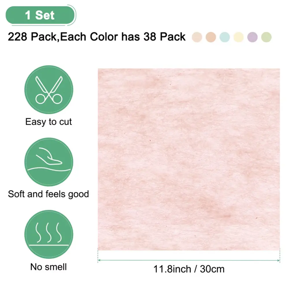 Cotton Durable Multipurpose Gift Wrap Paper 228 Pcs Tender Pink, Beige, Green, Sky Blue, Light Purple, Bright Beige