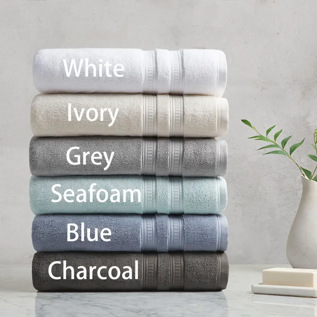 Our 6-piece towel set brings the perfect luxurious softness to your bathroom. Each towel is made from 750gsm premium cotton with a cashmere-like feel, is highly absorbent and durable; long-lasting softness thanks to the PVA-free 3PLY zero-twist construction, while also making this towel set economical and environmentally friendly. These towels do not contain any harmful substances or chemicals to ensure premium comfort and health. Each towel is treated with Intellifresh with silvadur antimicrobial technology that inhibits odor-causing bacteria, enhances odor control, protects fibers and fabrics, and delivers inherent freshness to keep linens looking newer, longer.Features:750gsm premium quality, for a soft and cashmere like hand feel.3PLY zero twist like construction for long lasting softness without the use of PVA, making it an economical and eco-friendly choice while also absorbent and durable.Oeko-Tex Certified, includes no harmful substances or chemicals.Machine washable for easy care.Set includes: 2 bath (30x54), 2 hand (16x28), and 2 wash (13x13) towels.