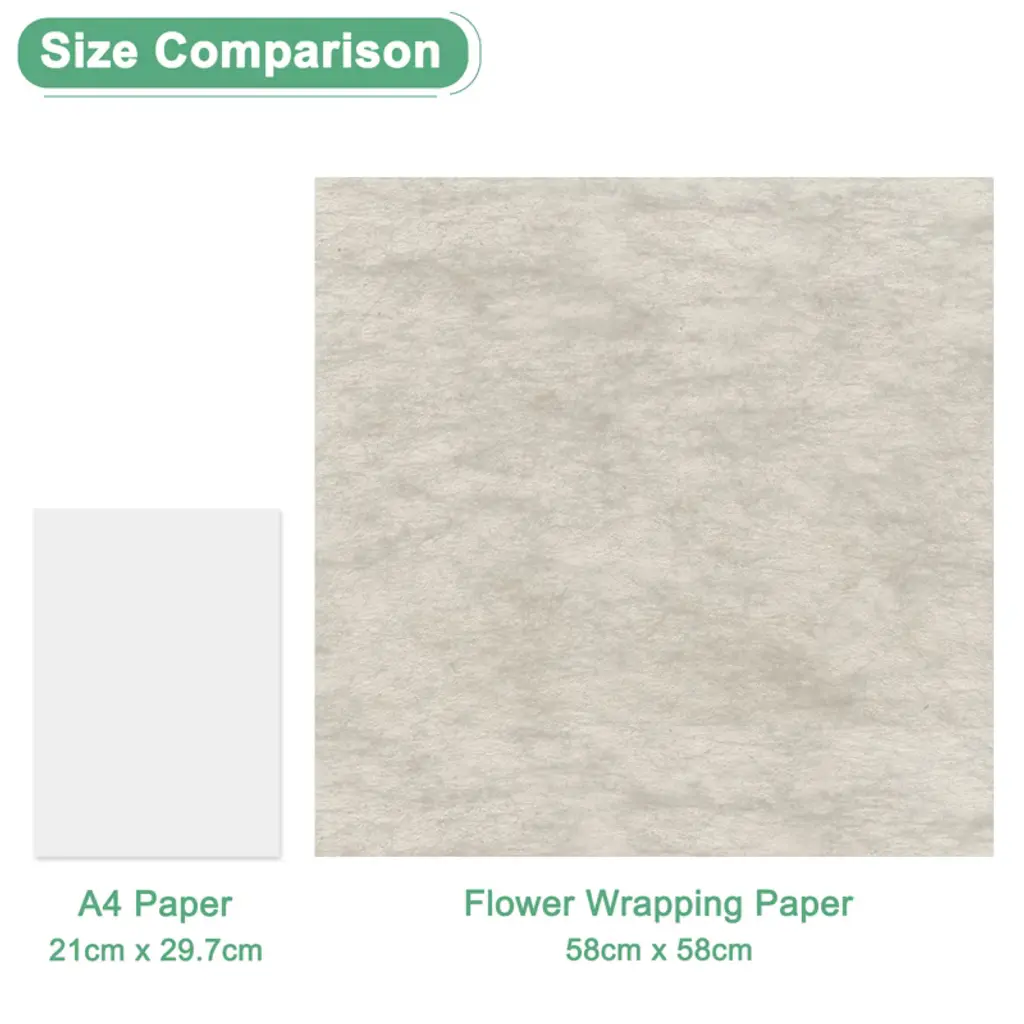 Florists and DIY enthusiasts often use this flower wrapping paper to wrap and present bouquets, and gifts. Crafted from cotton paper, this soft floral wrapping paper adds a delicate feel to any floral design. Its flexibility allows for various creative folding and wrapping techniques. Can be cut and the translucent design does not hide the color of the flowers. This flower wrapping paper offers versatility in creating beautiful floral presentations. The waterproof feature ensures that the paper protects the bouquet from moisture and maintains its freshness. When using floral wrapping paper, you should be careful to avoid tearing or wrinkling. Ensure proper cutting tools and keep the wrapped bouquets away from direct sunlight or water exposure to preserve beauty.
