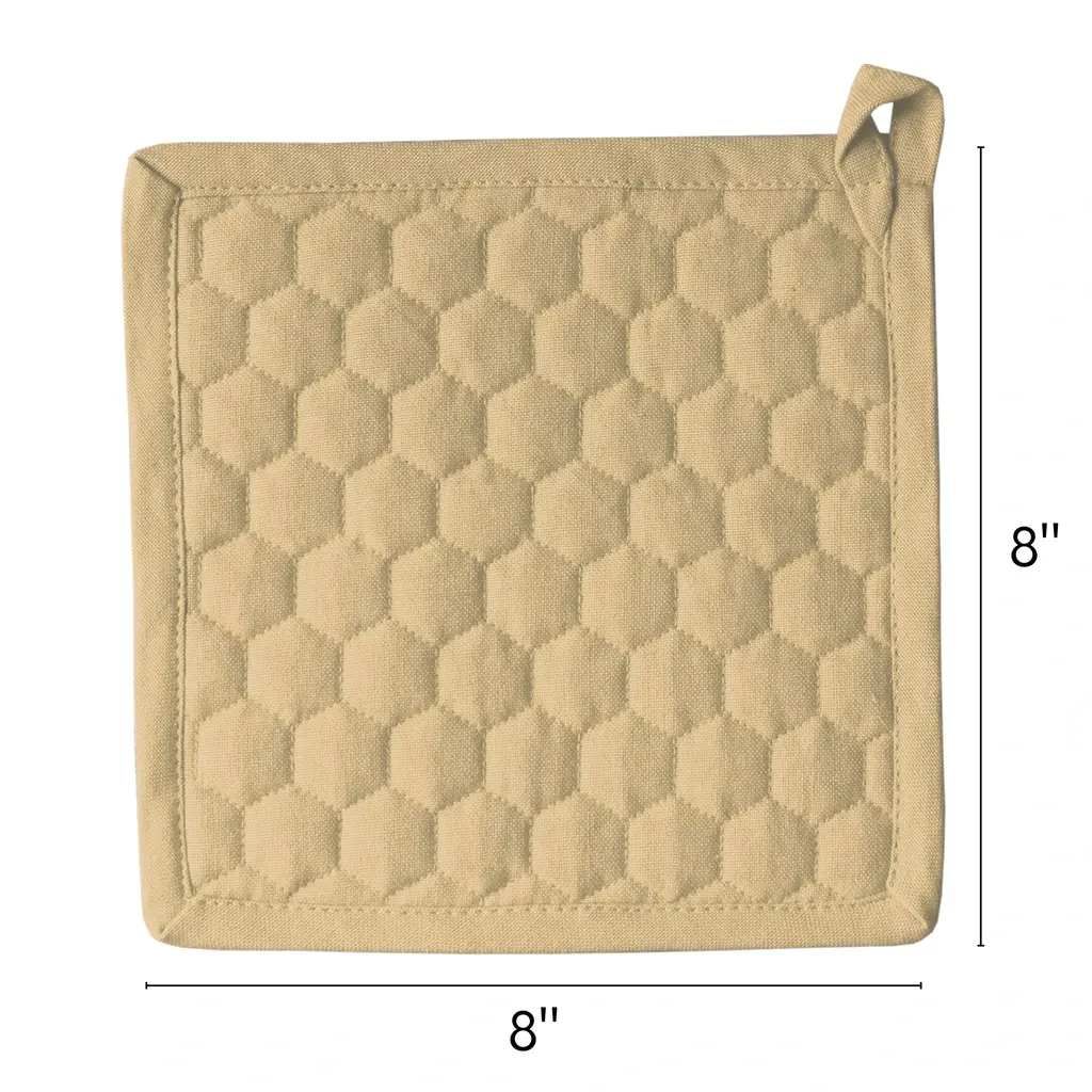 Elevate your kitchen's charm with the. hot pads pot holders. Designed for both functionality and style, it boasts heat-resistant cotton for safe handling. The visually appealing hues and motifs of the blue geometric design bring a fun element to your kitchen essentials collection. A must-have for every home, the cotton pot holders are a blend of aesthetics and utility. Highlighted Features: Being made of cotton, the pot holders are crafted from a breathable and natural fabric, providing comfort during use. Cotton's absorbent nature makes these pot holders ideal for quickly handling spills or damp surfaces. The pot holders incorporate an artistic blue geometric design. The eye-catching design elevates the aesthetics of your kitchen. The cotton pot holders are easy to maintain with a machine wash with mild detergent. Allow the pot holder to air dry after washing to avoid shrinkage and maintain its shape. Sold as a set of 2 pieces, each cotton pot holder measures 8 X 8 X 1 in inches. Thoughtfully sized, the pot holders are versatile and suitable for various kitchen needs.