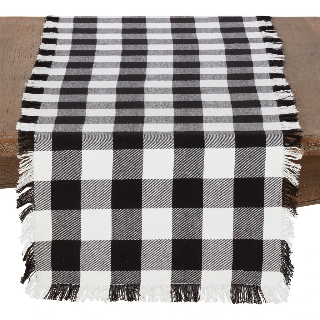 There's nothing like livening up a space without doing too much. Put the shimmy in motion with this stunning Buffalo plaid table runner. Made from 100% cotton, it features a lovely fringe trim that looks beautiful draped across any table. Colors available: Features:
