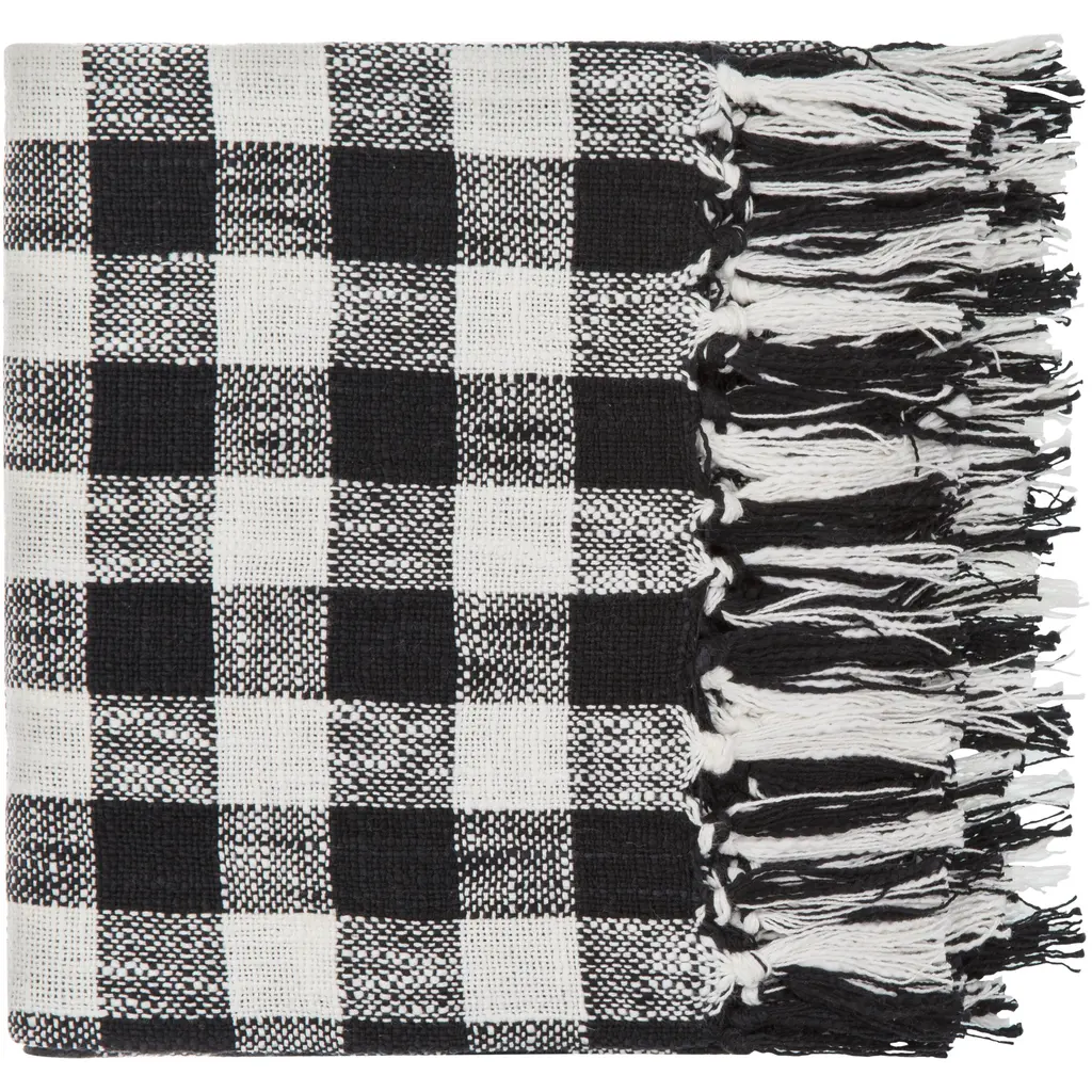 Cotton Runner With Buffalo Plaid And Fringe Design - Black