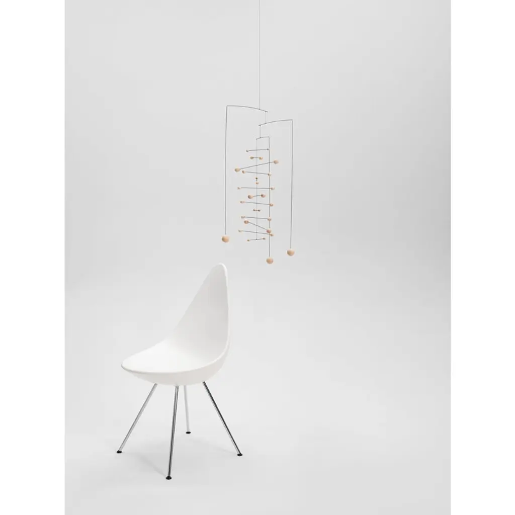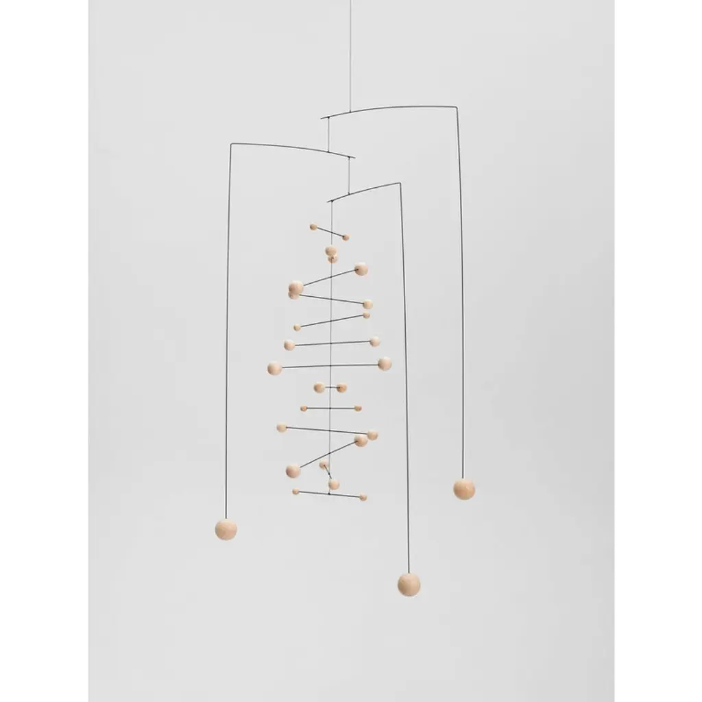 The Counterpoint mobile by Flensted Mobiles is Ole Flensted’s interpretation of musical melodies combining into a harmonic texture. The Counterpoint mobile is formed by adjacent, overlapping wooden balls that form a captivating, graphic and constantly evolving structure. Handmade in Denmark, the Flensted mobiles are unique and stylish elements in home décor and public spaces. While floating in the air, the mobile catches the eye and envokes interest and creativity in both children and adults. Every Flendsted mobile is designed to constantly move with the air currents in a calm, balanced manner.