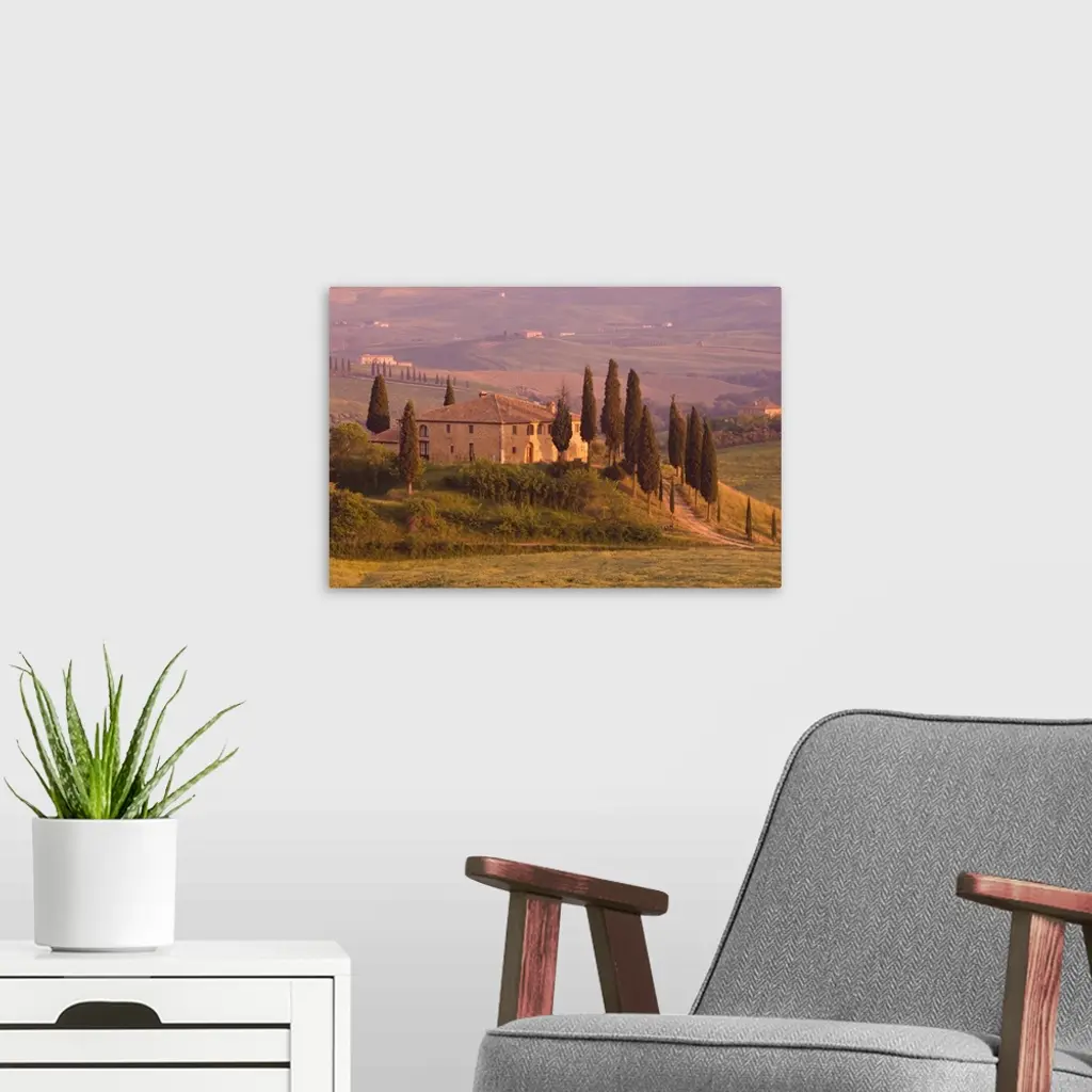 Country house, Il Belvedere, San Quirico d'Orcia, Tuscany, Italy wall art for home and office decor. Discover canvas art prints, photos, mural, big canvas art and framed wall art in GreatBigCanvas.com's varied collections.