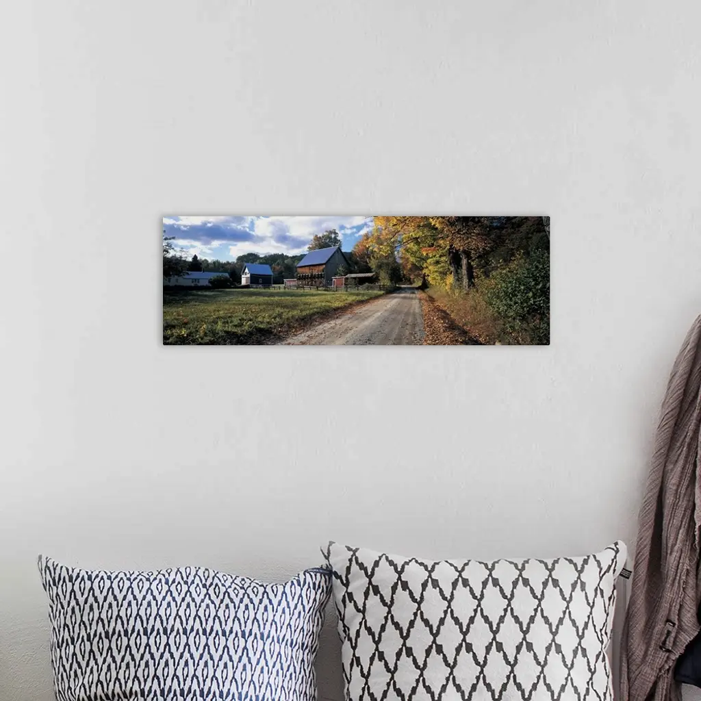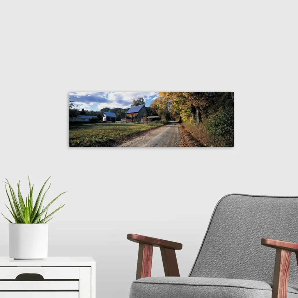 Country road along a farm, Vermont, New England wall art for home and office decor. Discover canvas art prints, photos, mural, big canvas art and framed wall art in GreatBigCanvas.com's varied collections.