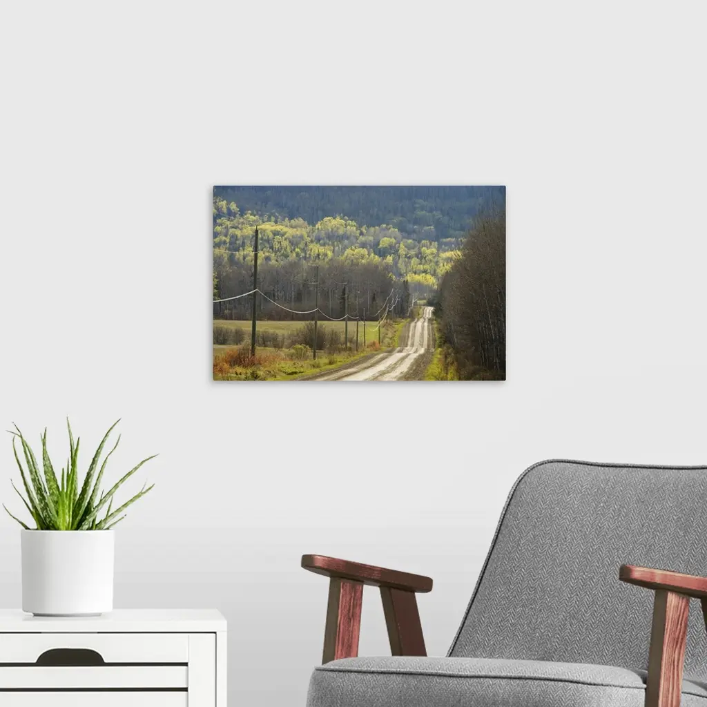 Country Road With Electrical Wires Running Along It, Thunder Bay, Ontario, Canada wall art for home and office decor. Discover canvas art prints, photos, mural, big canvas art and framed wall art in GreatBigCanvas.com's varied collections.