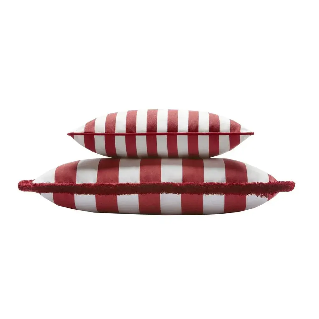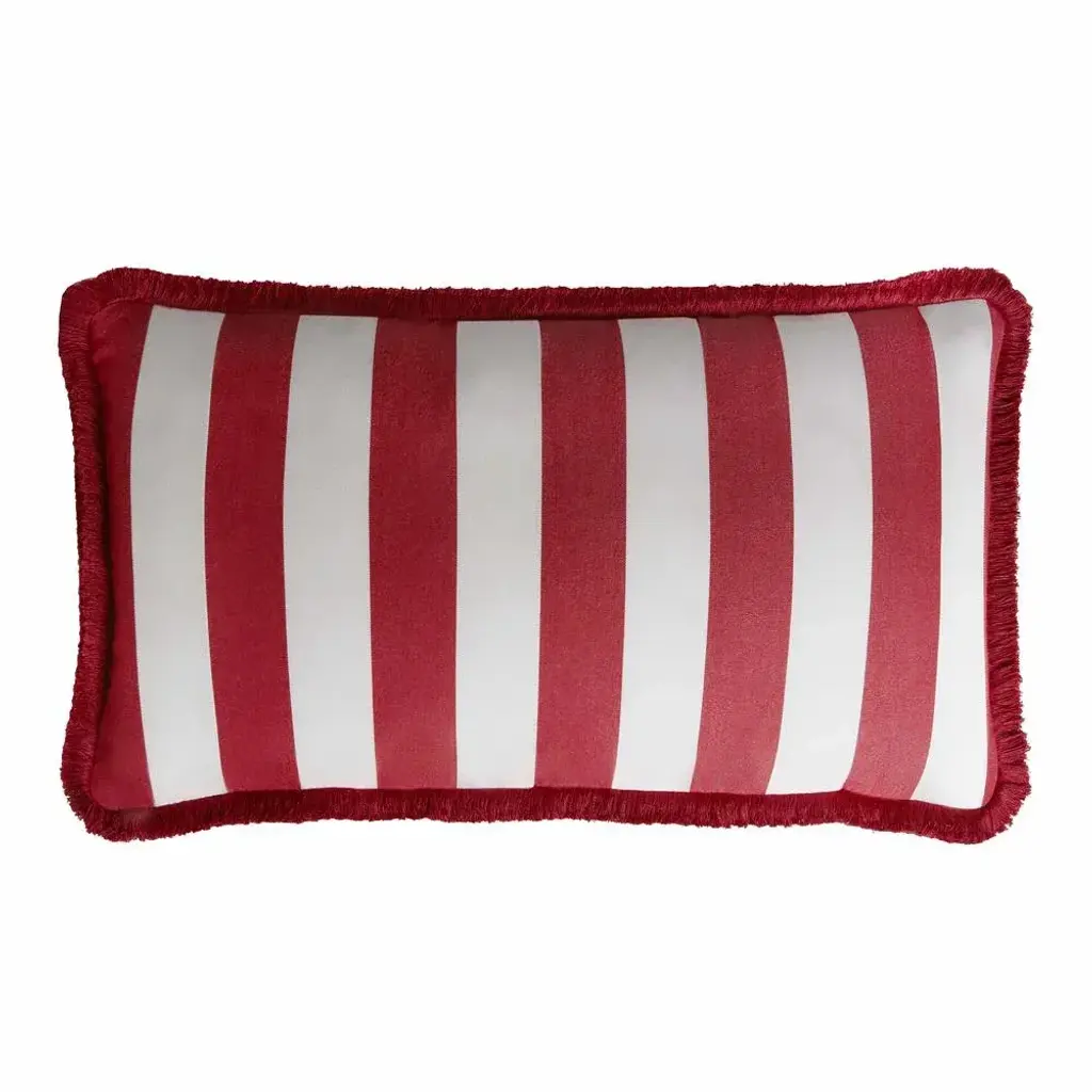 Clean lines, essential style, and a hint of vintage flair: this striped cushion is the perfect accent to bring charm and character to any outdoor space. The tone-on-tone fringe and piping add a sophisticated detail, ideal for settings that are relaxed yet refined. Crafted from durable, weather-resistant fabric, it combines beauty and practicality with ease. Perfect on loungers, benches, or outdoor sofas to recreate the vibe of exclusive lounges—where comfort meets design. Labeled by Maker,Labeled with Country of Origin