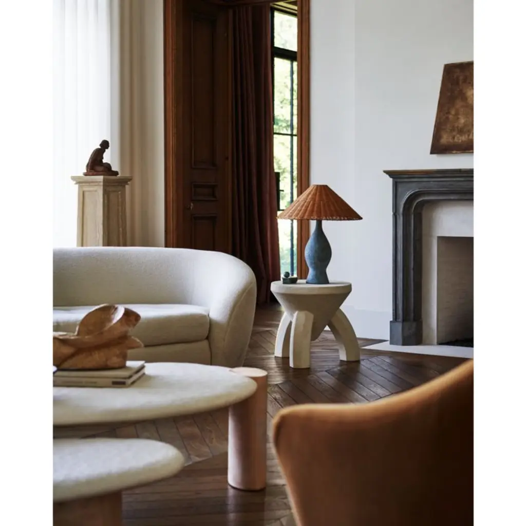Rooted in ancient forms with a textured twist, our Courbe lamp is sophisticated, approachable and ready to light up living rooms, entryways and bedrooms. The lamp's bottle-shaped base showcases the one-of-a-kind markings of reactive glaze in a matte rustic green with the look of a treasured artifact. The dramatically angled taper shade lends a breezy note, woven out of natural rattan complete with artisanal ribbing and a lash-finished rim.We've partnered with bestselling author, interior designer and EyeSwoon founder Athena Calderone to bring you a collection of designs for meaningful, beautiful modern living. Inspired by ancient forms and European finds, Crate x Athena fine-tunes scale, materials and comfort to fit seamlessly into your home.